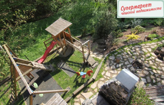 Современный дом 7 +3 с видом на лес и прекрасным сообщением с Прагой. Планировка дома : 4 + кк 140 м ², 2 + кк, 40 м ², студия 25 м ² + гараж на две машины. В доме 2 кухни, оборудованные встроенной техникой, 4 ванные комнаты, отопление с помощью рекуперации воздуха, солнечных панелей и камина. Возле дома есть бассейн с подогревом, сауна, детская игровая площадка.