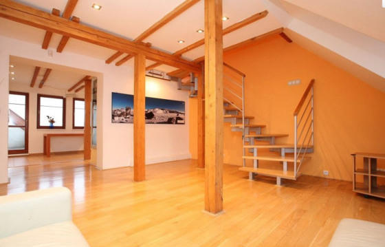 Предлагаем на продажу квартиру на мансардном этаже, 3+1, расположенную в районе Праги 4 - Нусле, в непосредственной близости рядом с парком Езерка, с видом на Петржин. Общая внутренняя площадь 97 м2, квартира была достроена в 2005 году. На первом этаже квартиры расположена прихожая, со входом в просторную ванную комнату и кухню, соединенную дверьми с залом, из которого ведет лестница наверх, в спальню. На первом этаже находится еще отдельный туалет и одна спальня. Кухня оборудована качественной мебелью, сделанной на заказ, а также бытовой техникой известных марок. В квартире очень хорошо спланированы места для хранения вещей, которые никак не ограничивают жилую площадь. В каждой комнате возможно подсоединение к Интернету и ТВ, включая спутниковое ТВ. Установлена усиленная входная дверь и электронная охранная система. Дом в очень хорошем состоянии. Оборудован современным лифтом. Для жителей дома доступен парк во внутреннем дворе и три площадки (одна для детей с горкой и лабиринтом, другие две - для футбола и волейбола). Общая площадь двора 4000 м2. В районе Прага 4 - Нусле есть все необходимые общественные услуги, а также отличное транспортное сообщение с центром ( остановки трамвая и автобуса в 2-х минутах пешей ходьбы, метро в 10-ти минутах пешей ходьбы или 2 остановки автобусом).