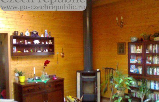 Деревянный дом L-образный, комната 36 квадратных метров с камином, кухня.16м2, спальня 18m2, маленькая комната, гардеробная, ванная комната с туалетом, все в дереве. Теплая вода бойлер, электрический котел, отопление. Зимний сад. Красивое место на окраине поселка, с видом на пруд, лес.