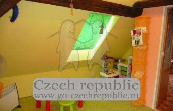 Дом 5 +1, площадь 130 м2, полы с подогревом электроэнергией. Дом включает в подвале однокомнатную квартиру в 30 м2, здание после реконструкции крыши общей площадью 630 м2. Общая площадь участка + сад 4140 м2. Поблизости находится поле для гольфа Карлштейн.
