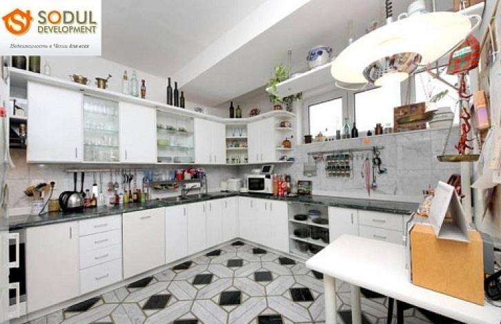 Архитектор спроектировал квартиру в мельчайших деталях. Просторные встроенные шкафы, большая библиотека, полностью оборудованная кухня с техникой и каменными столешницами. Квартира включает в себя гараж и большой подвал.