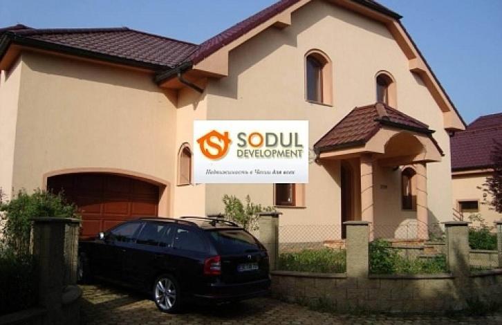 Мы предлагаем дом с гаражом, просторной террасой и большим зелёным садом. В доме 5 спален. На первом этаже: кухня, гостиная с камином и кабинет. На втором этаже: три спальни с выходом на балкон. В доме 3 ванны с туалетом.
