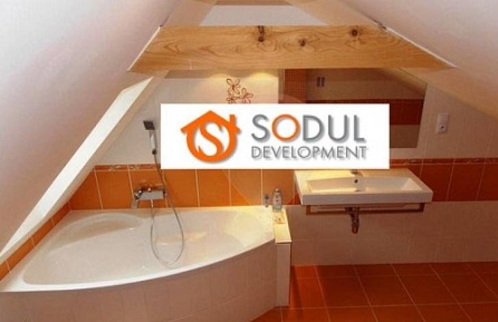 Дом спроектирован так, что на первом этаже расположен большой зал с камином, кухня и санузел и гардеробная. На втором этаже находятся две спальни и ванная комната с туалетом. Технические средства находятся в подвале.
