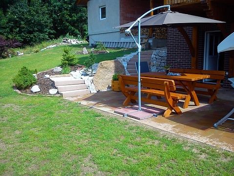 Продается новый меблированный дом в баварском стиле площадью 300 кв.м. в местечке Тисова у Нейдка, в 17 км от Карловых Вар. При строительстве были использованы лучшие экологические материалы из Германии, керамические блоки фирмы POROTHERM 365 мм., перекрытия железобетон, утепление дома произведено минеральной ватой 120мм. Отопление и нагрев воды осуществляется высокотехнологичной и экономичной системой глубинных насосов ZUBADAN от фирмы Mitsubishi Electric с акуммулирующей емкостью на 800 литров. Диспозиция дома: на первом этаже размещена кухня- столовая плавно переходящая в гостиную с камином с выходом на террасу с прекрасным видом на лес, санузел совмещенный - ванна + туалет, на втором этаже размещены 3 спальни, две из них с выход на террасу, и совмещенный санузел - душ + туалет. В полуподвале размещена сауна, комната отдыха с входом на террасу и техническая комната. Дом расположен на участке 1120 кв.м., который граничит с лесом, на нем же расположен гараж для одной машины и 4 парковочных места. Есть возможность докупить недорого у государства 1500 кв.м. земли для строительства пруда или сада,так как на участке есть родник. Прекрасное место для отдыха и любителей природы в любое время года, в отдаленности 3 км - лыжные подъемники.