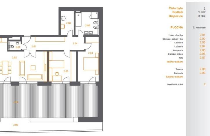 ID 1749Предлагаем на продажу квартиру к современной резиденции, состоящей из 8 квартир планировкой 3+кк, 4+кк и 5+кк площадью 95 м2 — 134 м2.В каждой квартире имеется сад или терраса.Великолепное месторасположение — красивый спокойный район, развитая инфраструктура, наличие необходимых учреждений рядом с домом, множество кафе и ресторанов, места для активного отдыха и релаксации.Квартира планировкой 3+кк 100 м2терраса 68 м2 парковочное место в подземном гараже Цена: 465 950 евро1 евро – 27 крон.