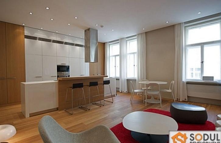 Мебель была сделана на заказ. Деревянные полы, французские двери, встроенное освещение, сигнализация с возможностью подключения к ЦУП. Терраса с видом во внутренний двор (общая с соседней квартирой). Покупная цена включает в себя полную меблировку.