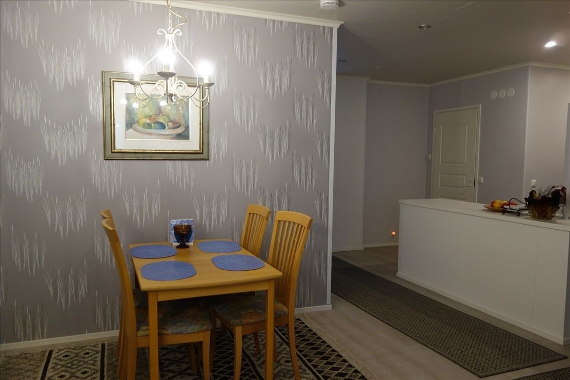 Продается 3-к квартира на первом этаже со своим небольшим двориком для барбекю, в центре города Мянтюхарью, площадью 100m² и год постройки 1983. Ежемесячные коммунальные платежи составляют - 320€ + 13,50€ за воду с человека. Дом находится в хорошем состоянии, централизованное теплоснабжение. Оборудованная кухня: холодильник/морозильник, индукционная плита, посудомоечная машина, новые шкафы. Вся мебель и оборудование приобретены вгодах.