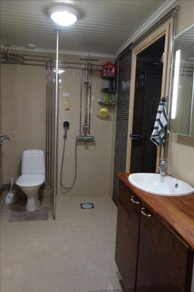 Сауна, ванная комната, санузел, пол с подогревом, подключение стиральной машины и гардеробная комната. Все услуги центра Мянтюхарью 100-400м, автобусная остановка 200м и железнодорожная станция 300м.