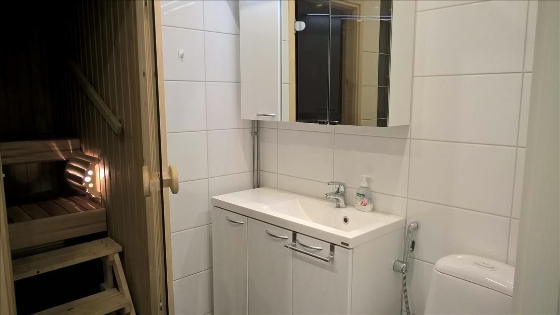 Продается террасная квартира в отличном состоянии после ремонта 2015г, в городе Юва, площадью 51,5m² и год постройки 1985. Ежемесячные коммунальные платежи составляют - 113,30€. Хорошее состояние дома, отопление электрическое. В квартире две комнаты, кухня оборудована холодильником с морозильной камерой, индукционная плита, вытяжка, нержавеющая сталь, микроволновая печь, посудомоечная машина (не использовалась), балкон на внутренний дворик, сауна, санузел, подключение стиральной машины, полы с подогревом. Паркетные полы. Энергосберегающие и яркие светодиодные системы освещения в каждой комнате. Гостиная окна выходят на задний двор. Реконструкция крыши была в 2012г, двери менялись в 2014 году, вентиляционные каналы очищались в 2015г.