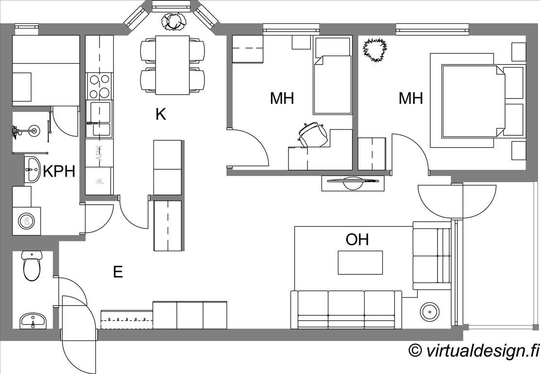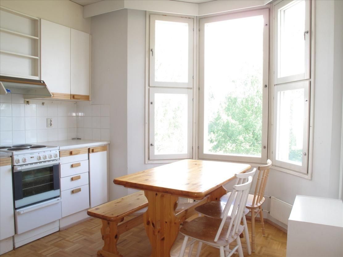Продается квартира на втором этаже в городе Юва, площадью 67,5m² и год постройки 1990. Ежемесячные коммунальные платежи составляют - 232,32€ + 15€ за воду с человека. В квартире три комнаты, кухня оборудована холодильником с морозильной камерой, электрическая плита, вытяжка, посудомоечная машина и шкафы.