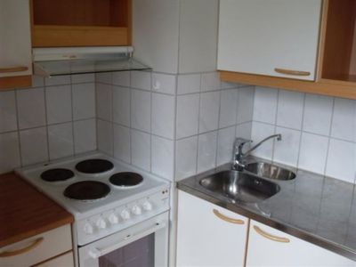 Кухня: холодильник, электрическая плита, шкафы в хорошем состоянии.