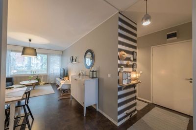 Трех комнатная квартира в хорошем состоянии на втором этаже в городе Vaasa, площадью 73 m2 и год постройки 2001. Ежемесячные коммунальные платежи составляют - 319,05 € + навес для машины 12 €, стоянка с подогревом 8 € и обычная 5 €. Рядом находятся прекрасные возможности для активного отдыха, лес и магазин, который находится всего в километре от дома. Светлые и чистые комнаты, полы ламинат + плитка, кухня оборудована холодильником с морозильной камерой, винный шкаф, плита и вытяжка, посудомоечная машина. В квартире два туалета, ванная комната, сауна и большой балкон. Кабельное телевидение. Детский сад и школы около 3км.