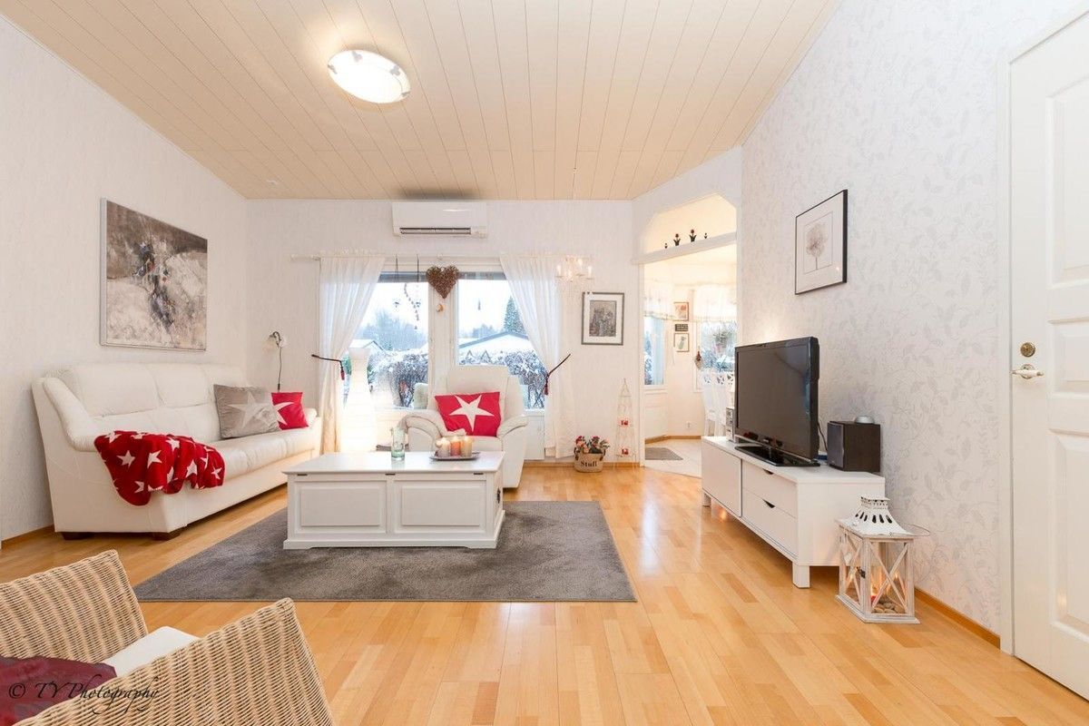 Продается стильный и просторный дом в районе Ylöjärvi, жилая площадь 95m2 и год постройки 1997. Ежемесячные коммунальные платежи составляют - 133€, кабельное телевидение 5 €/мес. В доме 4 комнаты, полностью оборудованная кухня, гардеробная комната, сауна, ванная комната, полы с подогревом, камин в гостиной. Деревянные паркетные полы, кухня и коридор - кафельный пол. Отопление дома электрическое + тепловой насос с 2015 года. Свой участок 453,50m2, общий навес.