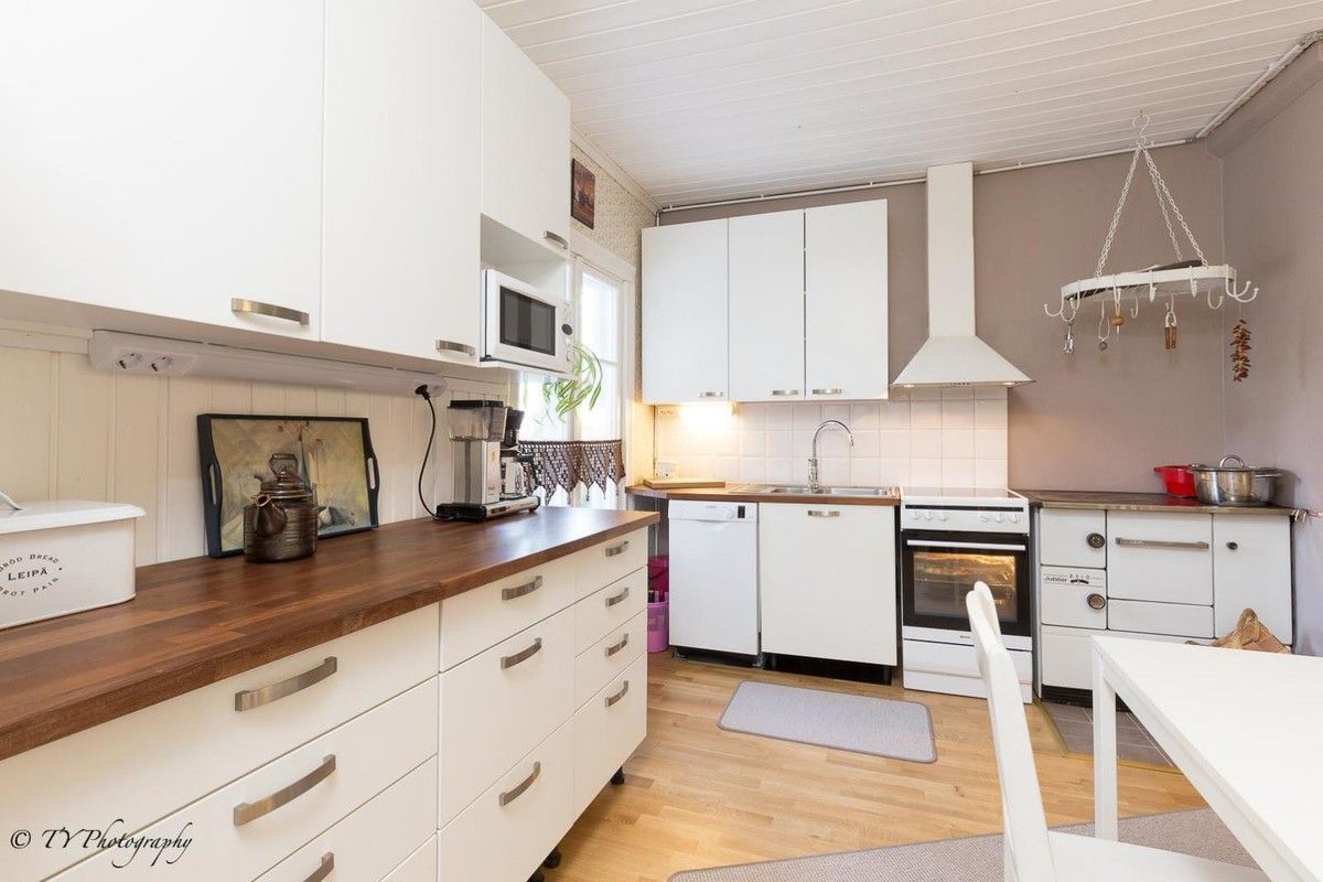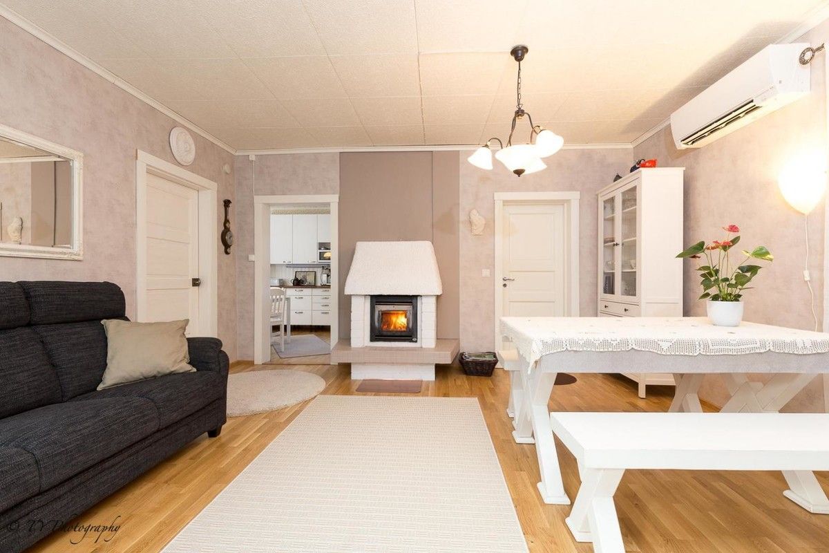 Продается прекрасный отреставрированный дом на берегу озера, собственный пляж, в городе Akaa, площадью 90m2 и год постройки 1925. Крыльцо, прихожая, гостиная, камин, кухня, две спальни, ванная комната, сауна. Фасад дома окрашен и частично отремонтирован, крыльцо полностью отремонтировано, электричество, трубопроводов, кухня, ванная, туалет - после ремонта вгодах. Кухня: плита, вытяжка, посудомоечная машина, холодильник, морозильник, светлые шкафы. Свой участок площадью 1. 611m2, сауна около 38m2 и гараж 24m2. Система отопления дома: электричество, камин и тепловой насос.