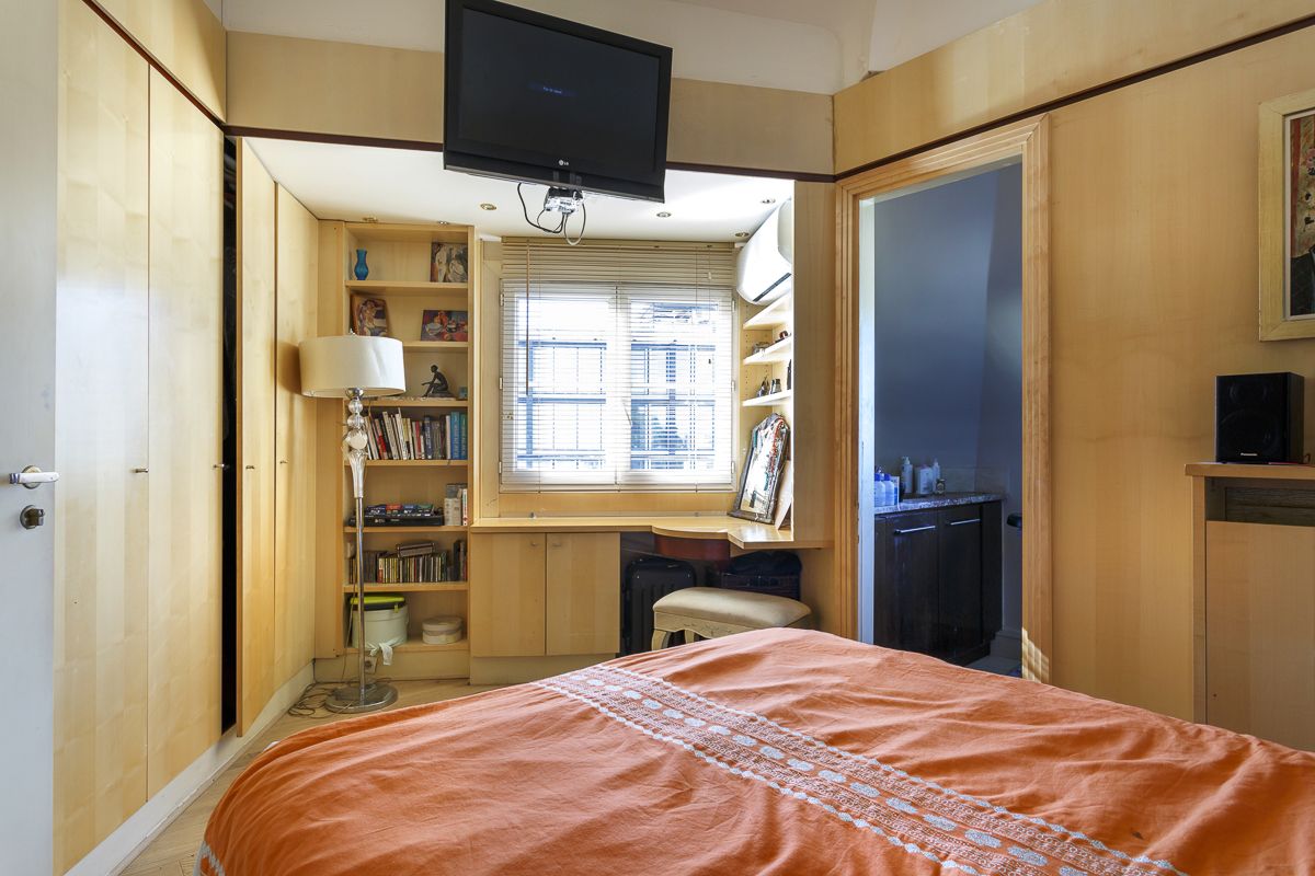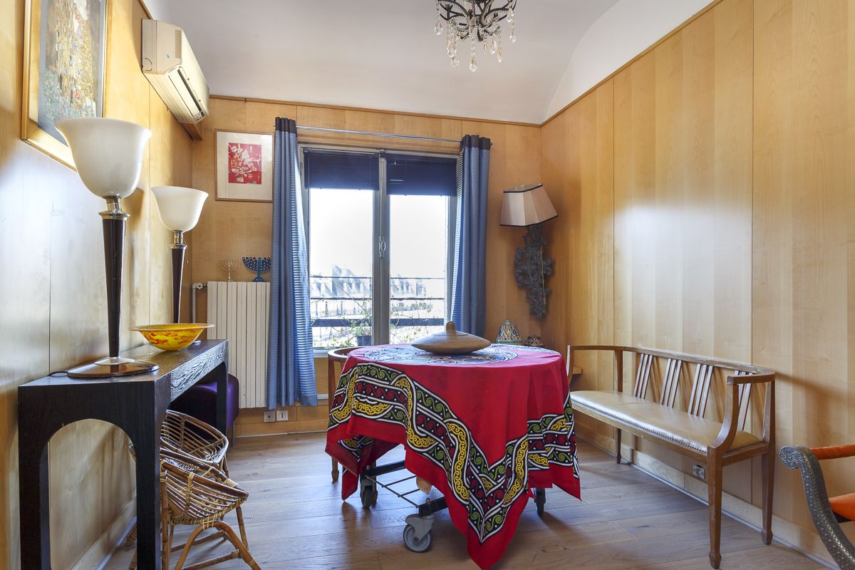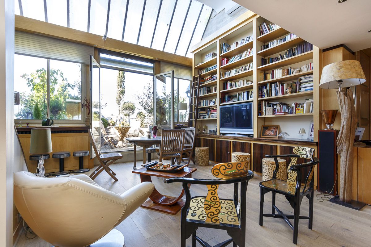 Недалеко от метро Sevre-Babylone на 8-ом и последнем этаже красивого здания 1930 года постройки, оснащенного лифтом эта необыкновенно светлая и оригинальная квартира площадью 100 кв.м. обладает несколькими террасами общей площадью 38 кв.м. Она представляет из себя прихожую, наполненную светом гостиную - "ателье артиста" со стеклянным потолком и с выходом на террасу без визави, столовую, кухню, две спальни со своими ванными комнатами. Мезанин, ведущий из салона на наполненные солнцем террасы с красивым видом на Париж, может быть использован как рабочий кабинет.