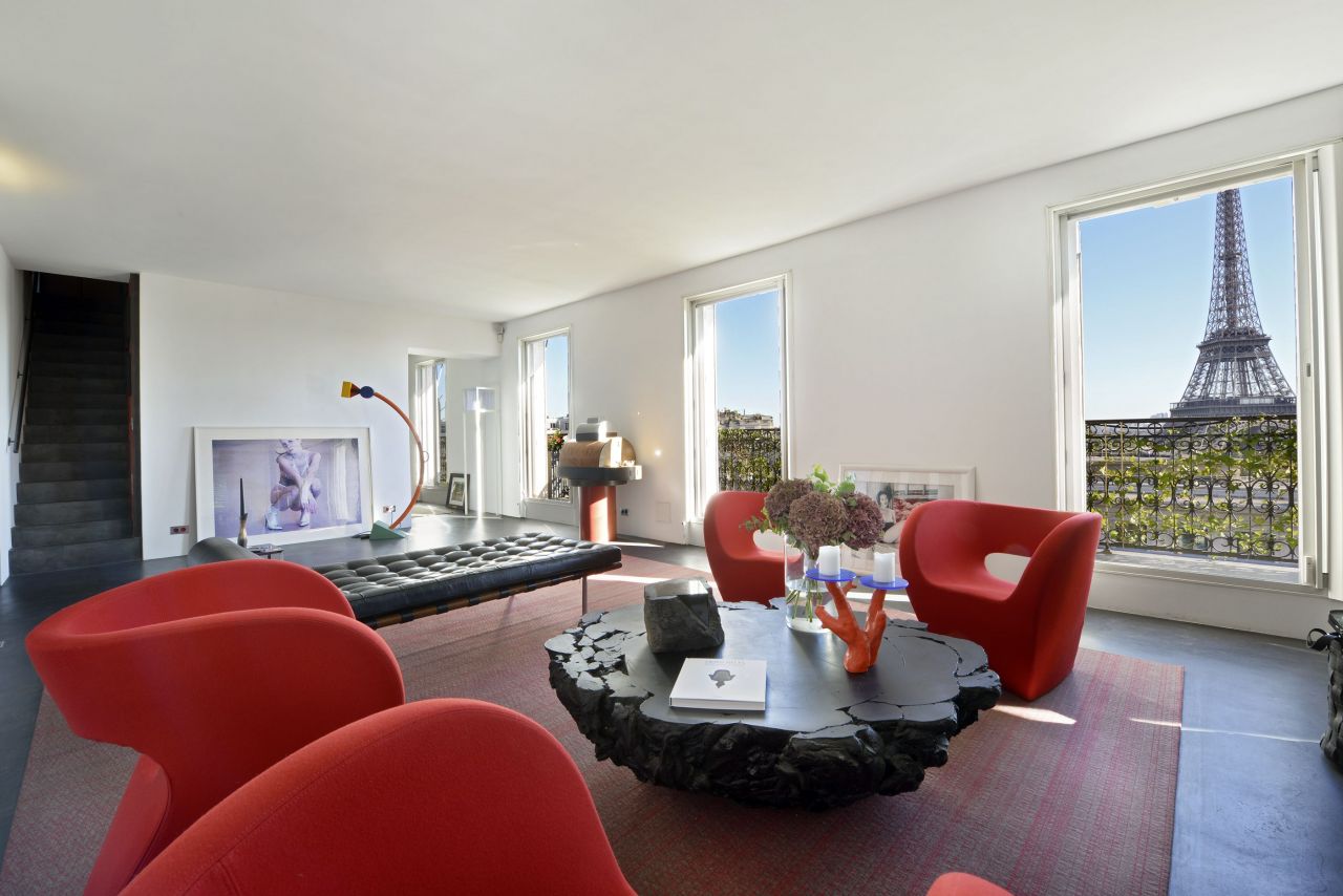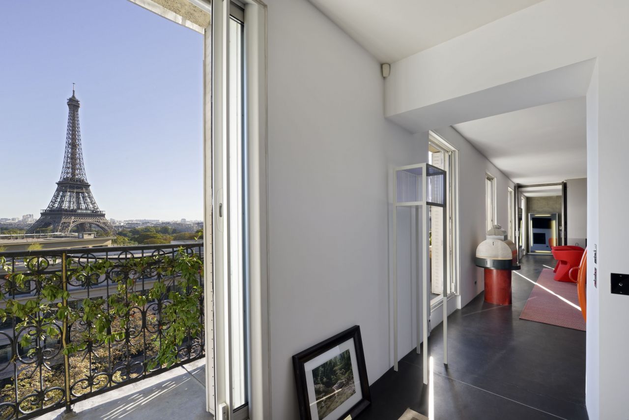 В 16 округе Парижа рядом с Трокадеро в красивом здании из точеного камня на последнем шестом этаже квартира 223 кв.м. с балконом и неповторимым видом на Эйфелеву башню.
