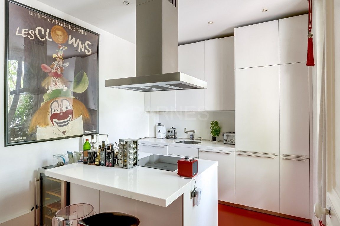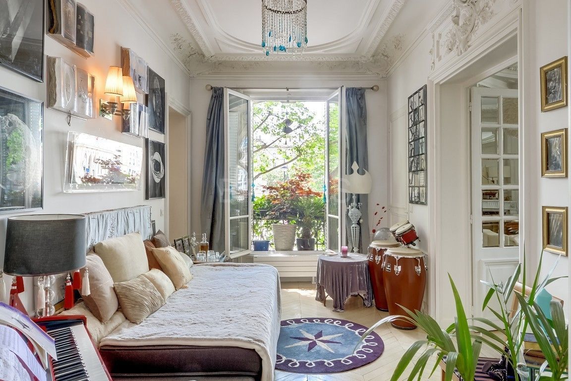 Квартира расположена на первом этаже красивого здания на площади Saint Sulpice в 6 округе Парижа. В квартире: входная группа, угловая гостиная, столовая, встроенная кухни, три спальни, ванная и отдельный санузел. Также имеется два подсобных помещения.