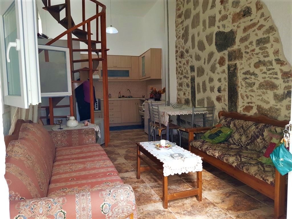 Продается 2-этажный коттедж площадью 60 кв.м на острове Крит. Первый этаж состоит из гостиной с кухней, одного санузла. Второй этаж состоит из 2 спальных комнат, одной душевой комнаты. Из окон открывается вид на город. У объекта есть солнечные батареи для нагрева воды. Недвижимость продается с мебелью.