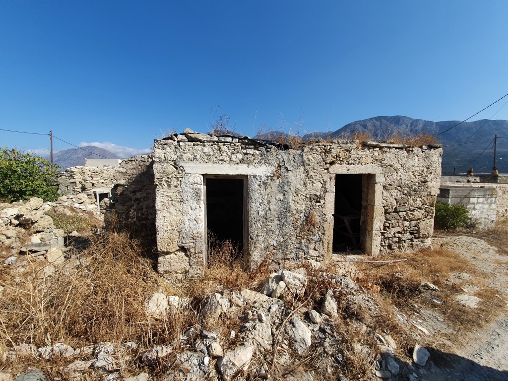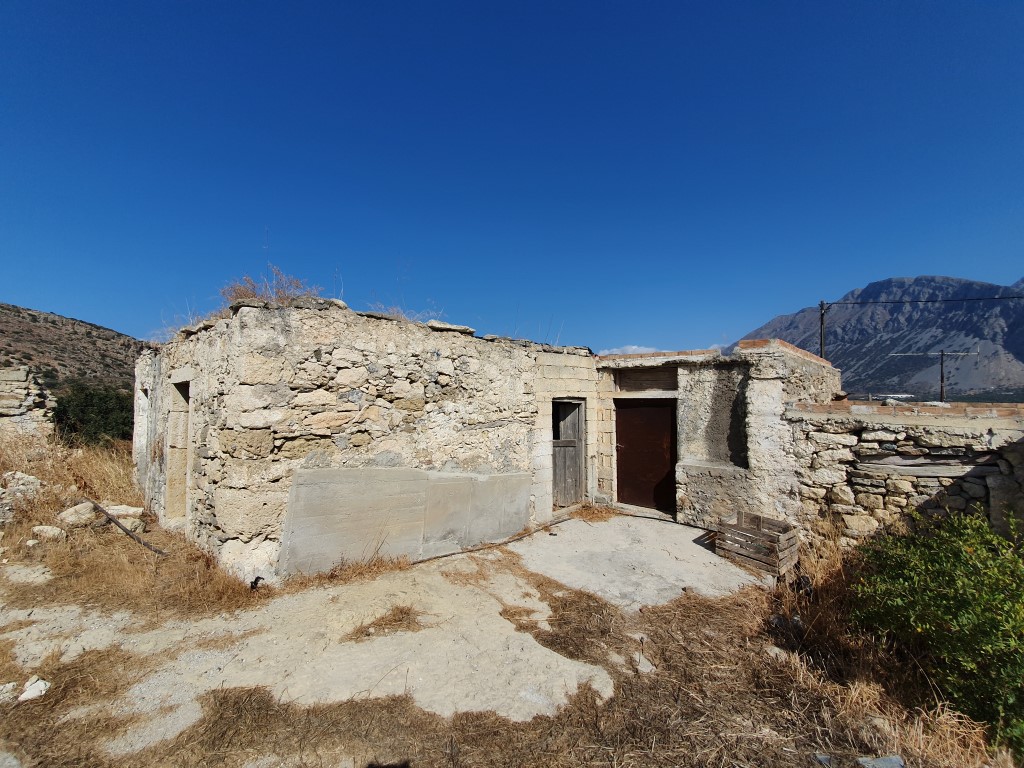Продается ветхое жилье, 1-этажный коттедж площадью 85 кв.м на острове Крит. Коттедж состоит из 6 кладовых. Из окон открывается вид на горы, на город.