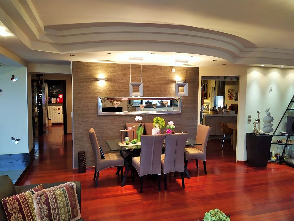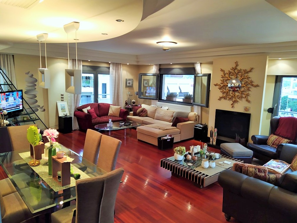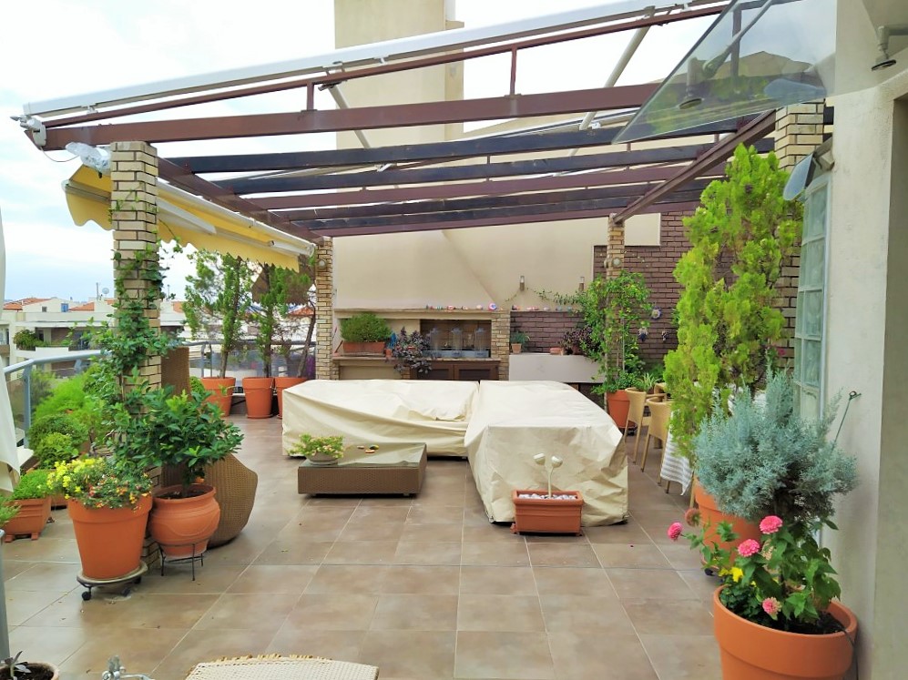 Продается дуплекс площадью 310 кв.м в Салониках. Дуплекс расположен на 2 уровнях. Пятый этаж состоит из 3 спальных комнат, гостиной, одной кухни, одной ванной комнаты, одной душевой комнаты. Чердак состоит из 2 спальных комнат, гостиной, одной кухни, одной ванной комнаты, 2 кладовых. Двухуровневая квартира имеет угловое расположение. Из окон открывается великолепный вид на море, на горы, на город. У объекта есть камин, кондиционер, тенты, зона барбекю, отопление. В здании расположен лифт. У объекта установлена сигнализация. К недвижимости относится парковочное место, гараж. Квартира расположена в районе Каламаря.