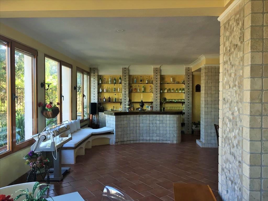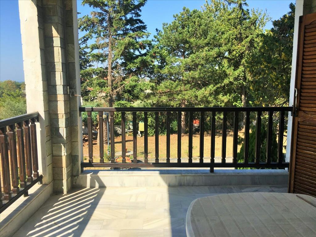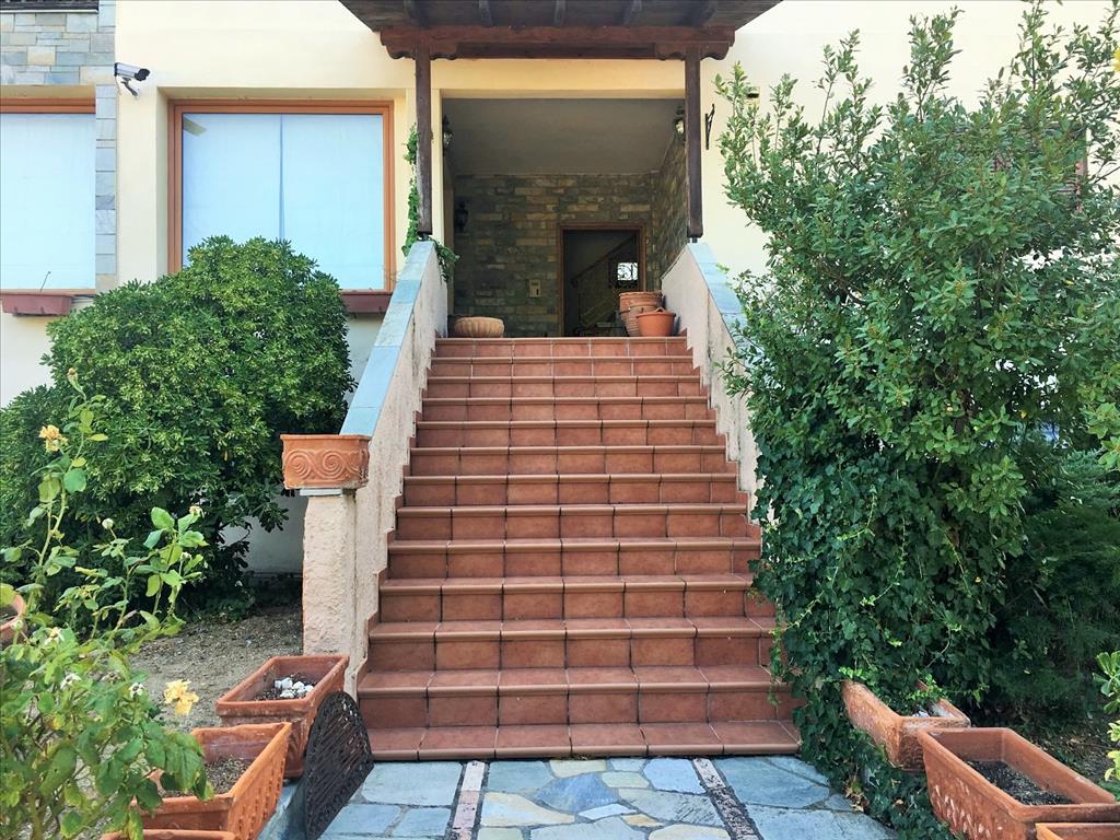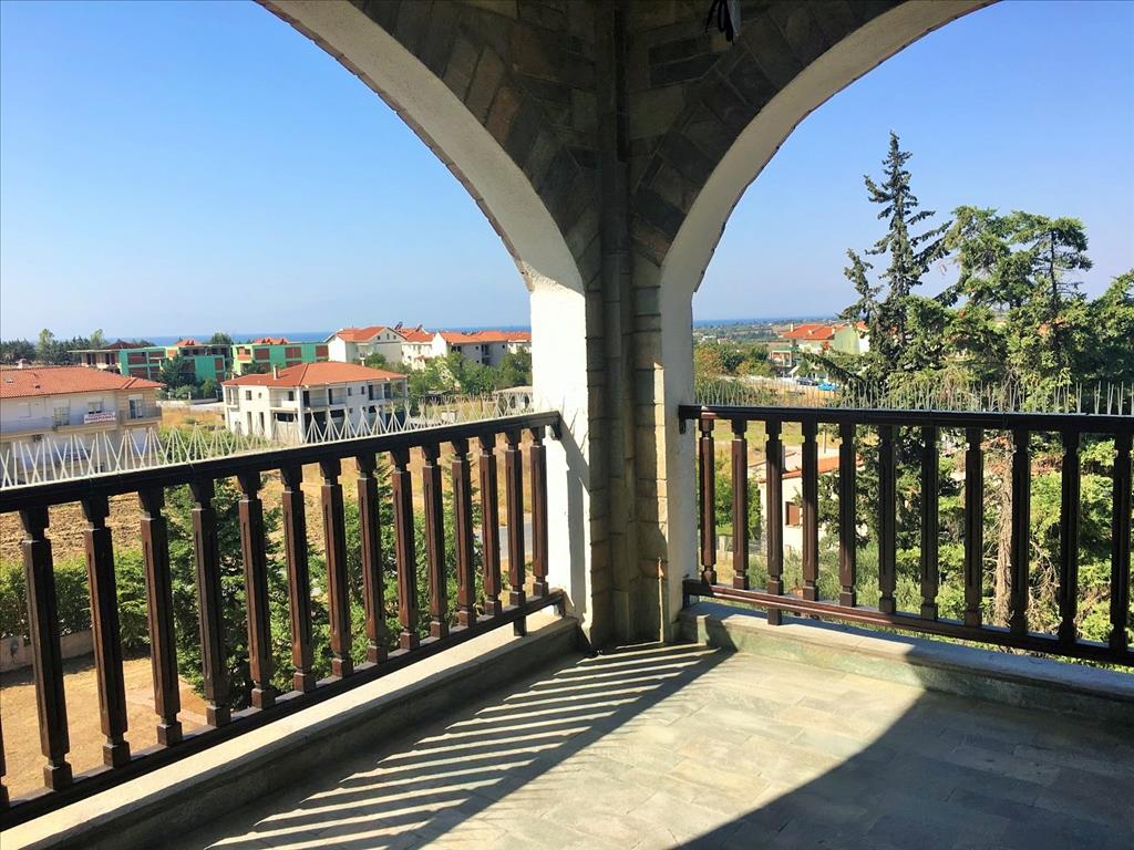 Продается 3-этажная вилла площадью 728 кв.м в пригороде города Салоники. Первый этаж состоит из одной спальной комнаты, гостиной с кухней, 3 кладовых. Второй этаж состоит из 2 спальных комнат, гостиной с кухней, гостиной, 2 санузлов. Третий этаж состоит из 6 спальных комнат, гостиной с кухней, гостиной, одной ванной комнаты, 2 душевых комнат, джакузи. Вилла имеет угловое расположение. Из окон открывается великолепный вид на море, на горы, на город, на лес. У объекта есть камин, кондиционер, тенты, зона барбекю, отопление. Недвижимость продается с мебелью. У объекта установлена сигнализация. К недвижимости относится парковочное место, сад, гараж.