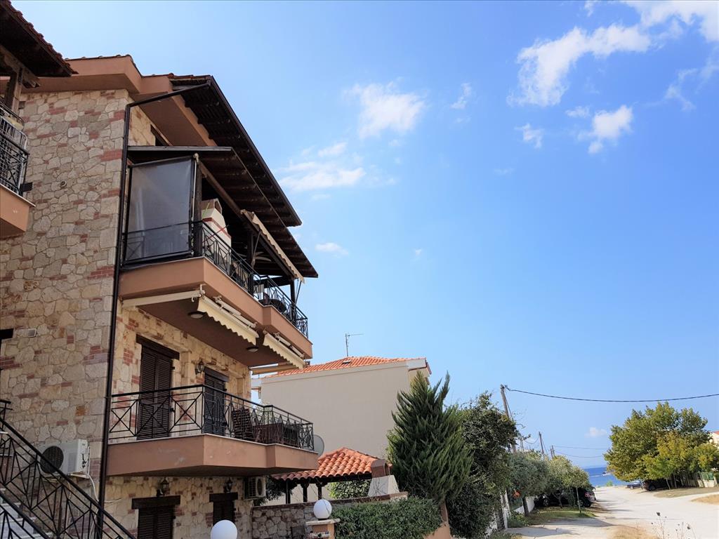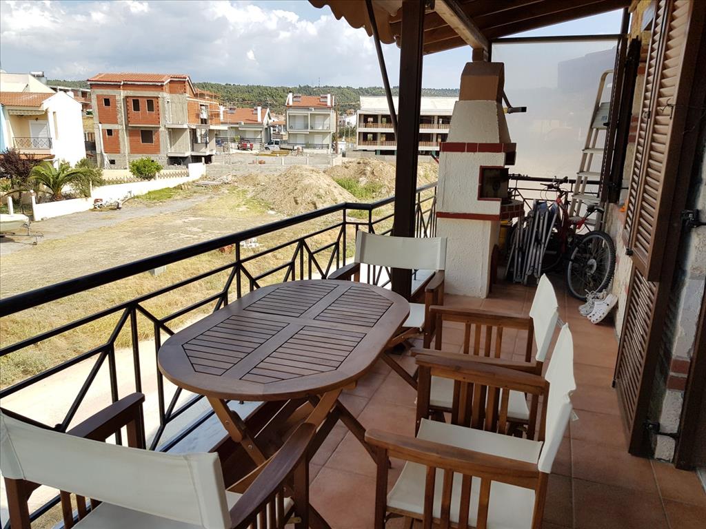 Продается дуплекс площадью 85 кв.м на полуострове Ситония, региона Халкидики. Дуплекс расположен на 2 уровнях. Третий этаж состоит из гостиной с кухней, одного санузла. Четвертый этаж состоит из 2 спальных комнат, одной душевой комнаты. Из окон открывается вид на море. У объекта есть камин, кондиционер, тенты, зона барбекю, отопление. Недвижимость продается с мебелью.