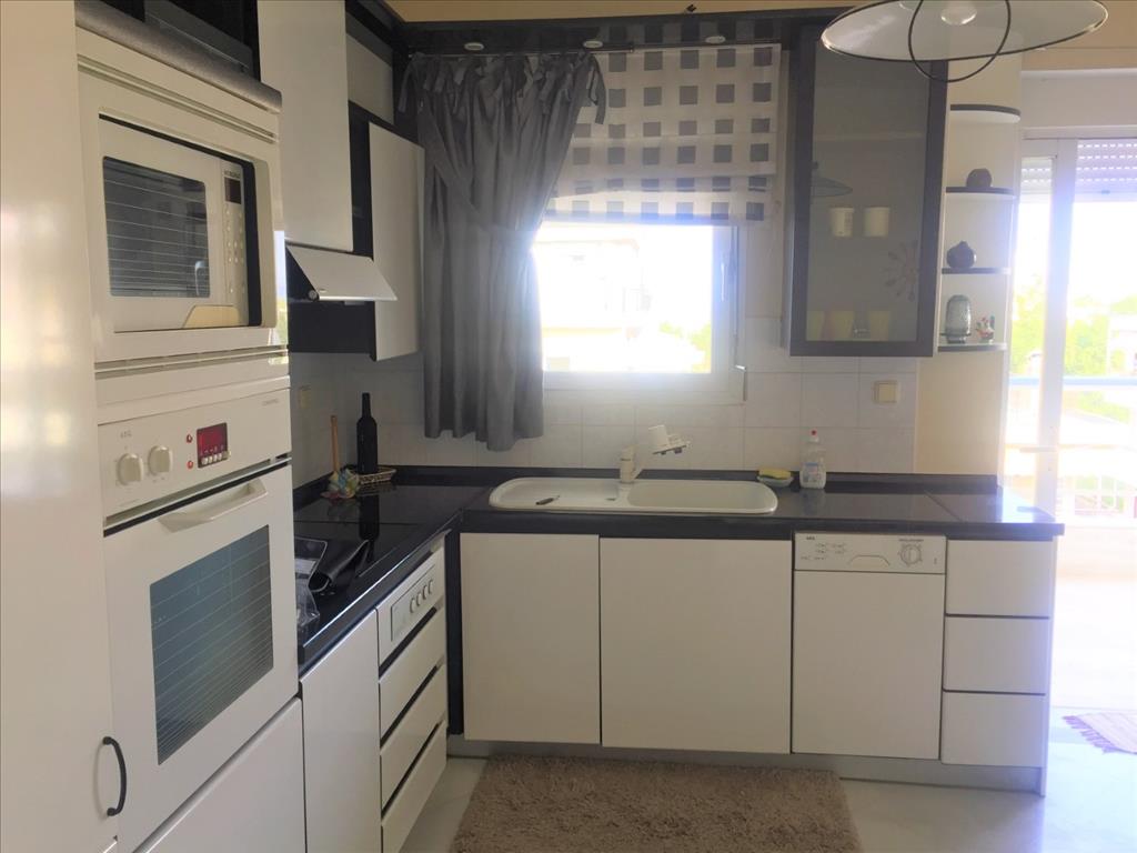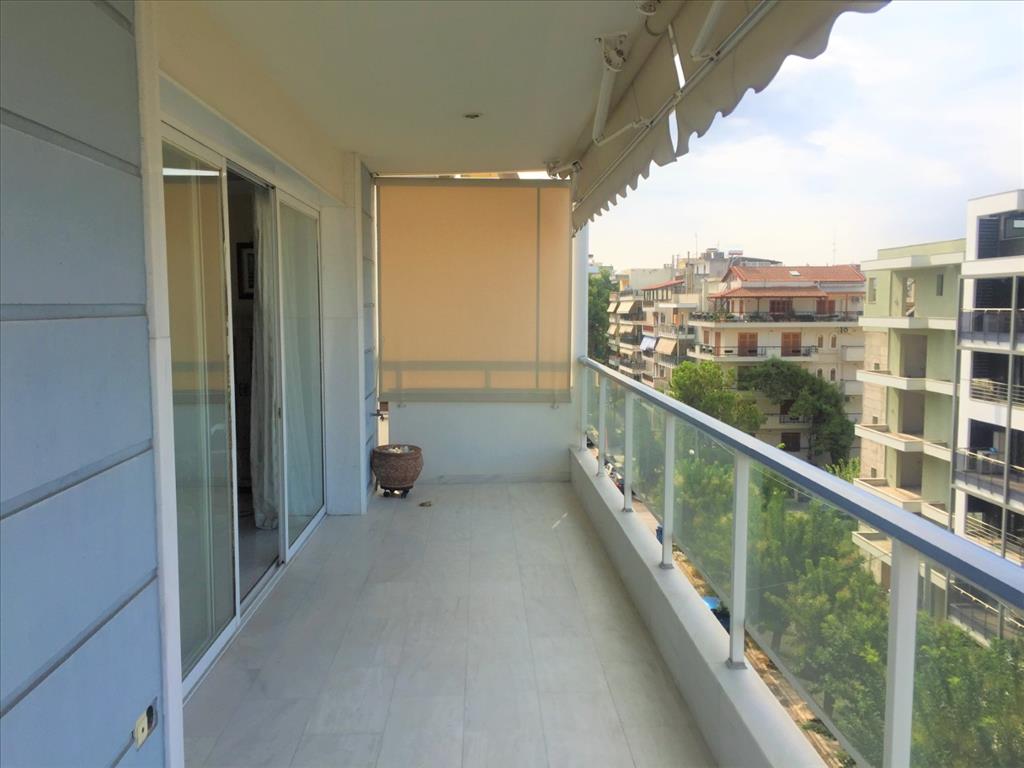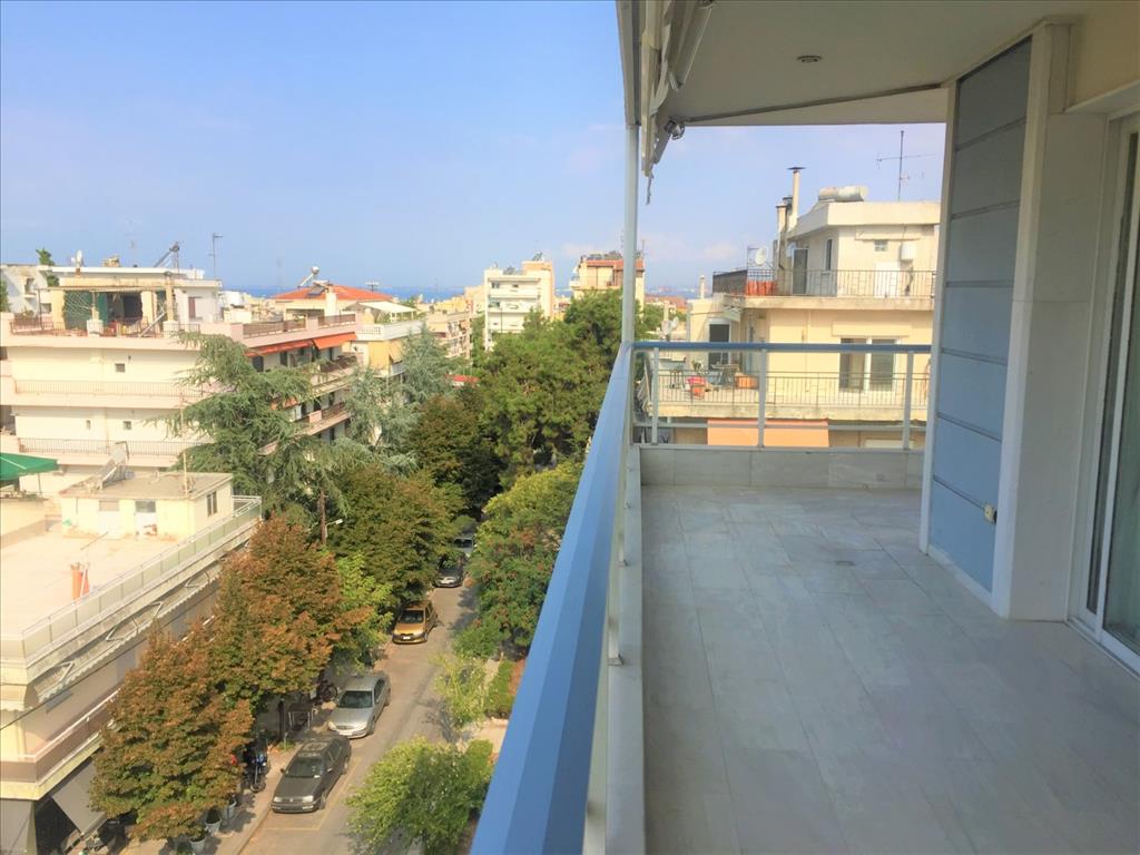 Продается квартира площадью 119 кв.м в Салониках. Квартира расположена на шестом этаже и состоит из 2 спальных комнат, гостиной, одной кухни, одной ванной комнаты, одной душевой комнаты. Квартира имеет угловое расположение. Из окон открывается вид на море, на город. У объекта есть камин, кондиционер, тенты, отопление. Недвижимость продается с мебелью. В здании расположен лифт. К недвижимости относится парковочное место. Квартира расположена в районе Каламаря.