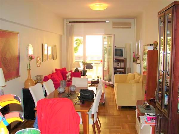 Продается квартира площадью 78 кв.м в Салониках. Квартира расположена на восьмом этаже и состоит из 2 спальных комнат, гостиной с кухней, одной ванной комнаты. У объекта есть кондиционер, тенты, отопление. В здании расположен лифт. Квартира находится в районе Неа Паралия