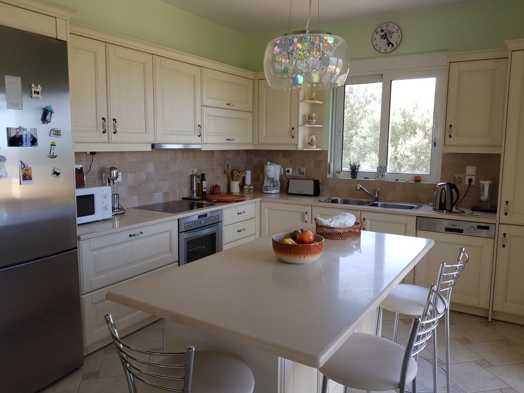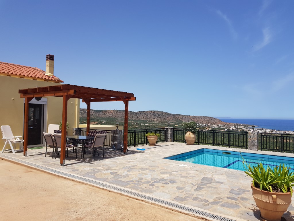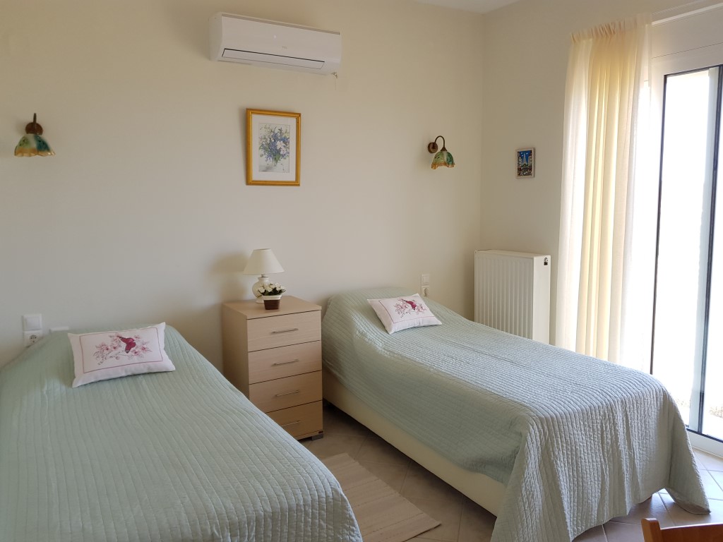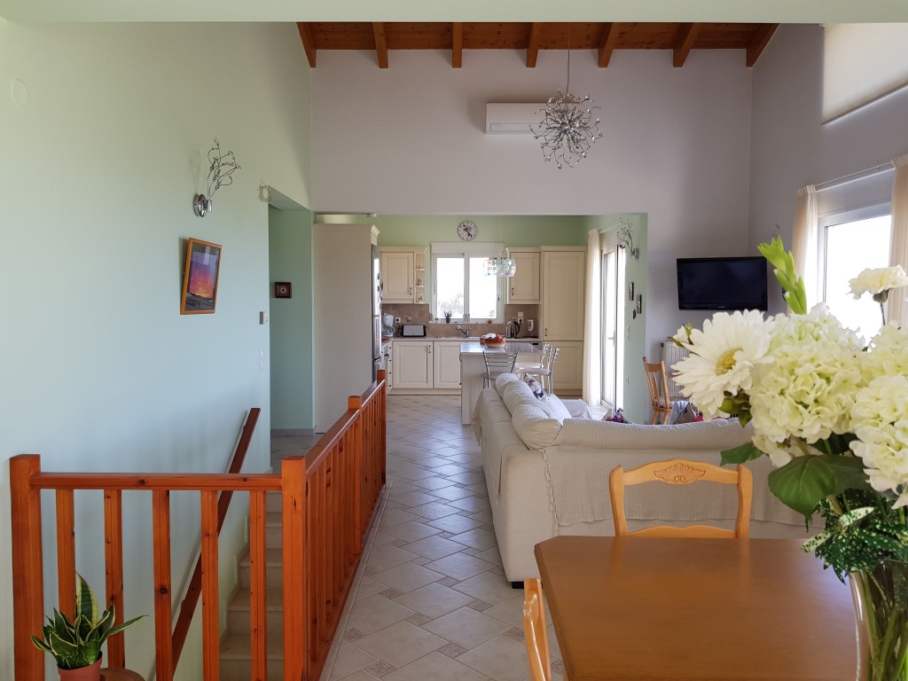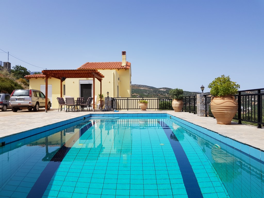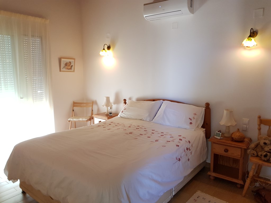 Продается 2-этажная вилла площадью 144 кв.м на острове Крит. Первый этаж состоит из одной спальной комнаты, гостиной с кухней, одной душевой комнаты. Полуподвал состоит из 2 спальных комнат, одной душевой комнаты, 2 кладовых, одного офиса. Из окон открывается великолепный вид на море, на горы, на город. У объекта есть солнечные батареи для нагрева воды, камин, кондиционер, отопление. Недвижимость продается с мебелью. К недвижимости относится парковочное место, сад. На территории расположен бассейн личного пользования.
