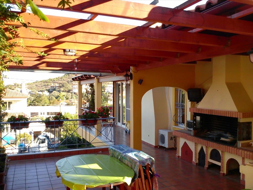 Продается 3-этажный коттедж площадью 187 кв.м в Аттике. Первый этаж состоит из одной спальной комнаты, гостиной с кухней, одной ванной комнаты, одной кладовой, одной игровой комнаты. Второй этаж состоит из 2 спальных комнат, гостиной с кухней, одной ванной комнаты. Третий этаж состоит из гостиной. Из окон открывается великолепный вид на горы, на лес. У объекта есть камин, кондиционер, тенты, зона барбекю, отопление. У объекта установлена сигнализация. К недвижимости относится парковочное место, сад, гараж. Коттедж расположен в прибрежном районе Палеа Фокеа.