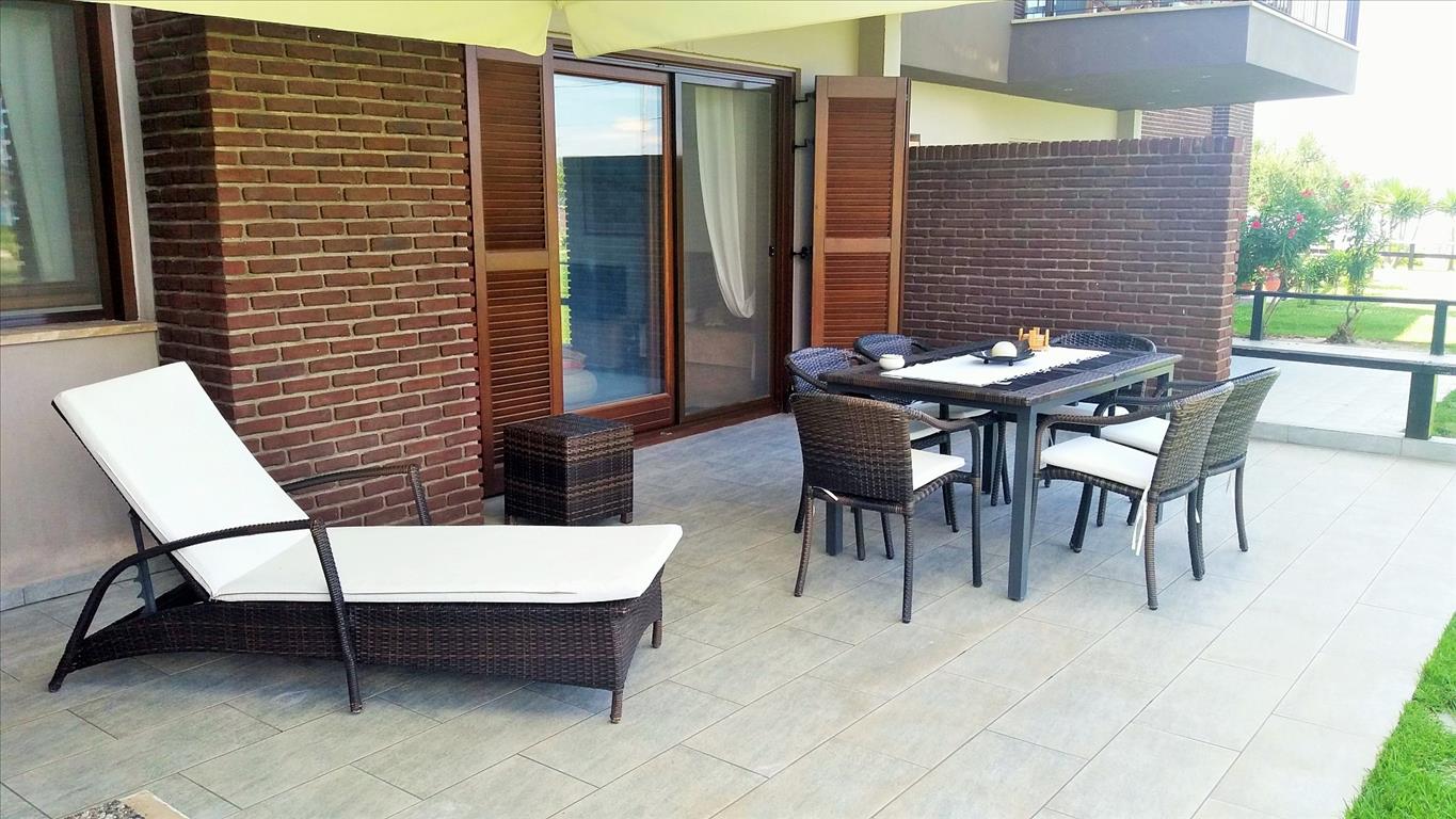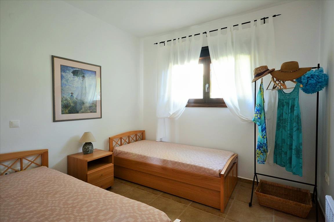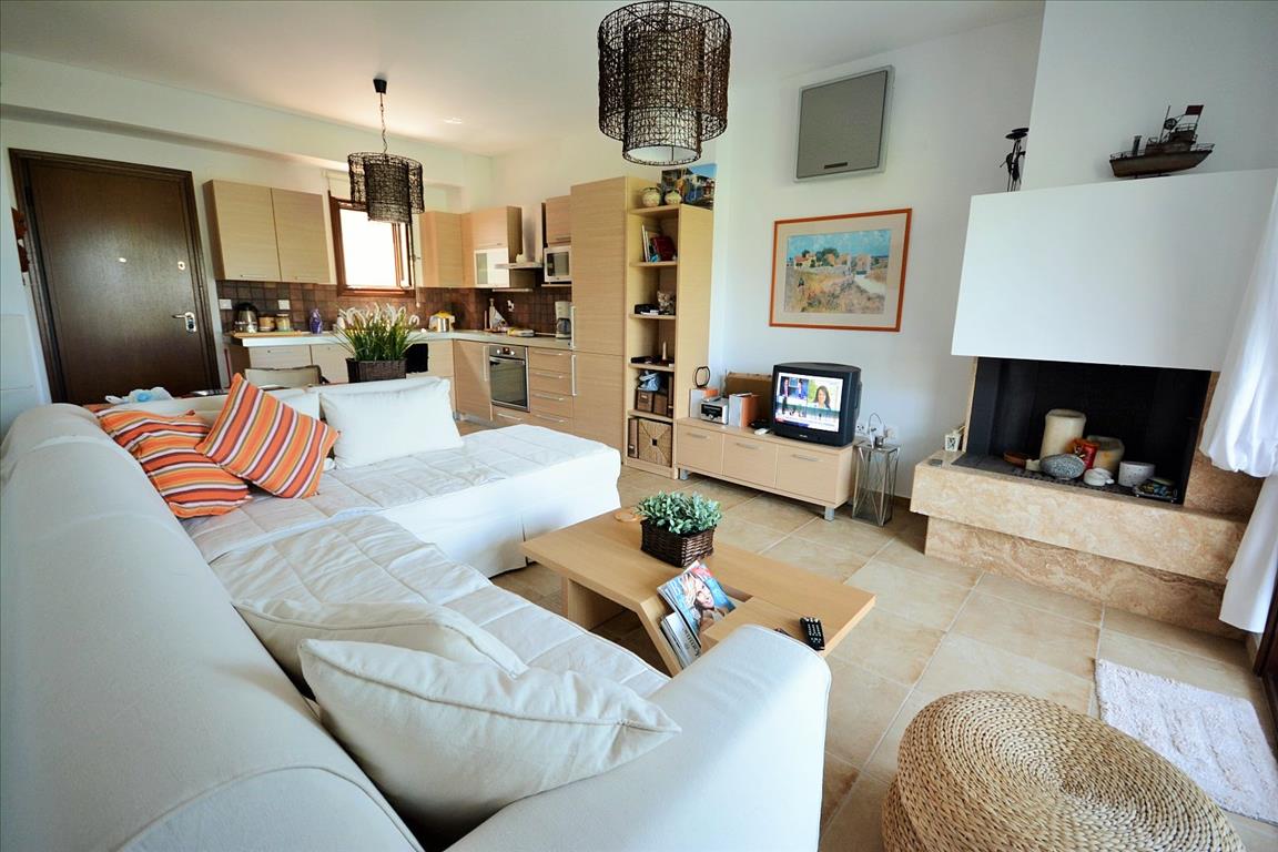 Продается квартира площадью 65 кв.м на полуострове Афон, региона Халкидики. Квартира расположена на первом этаже и состоит из 2 спальных комнат, гостиной с кухней, одной душевой комнаты, одной кладовой. Из окон открывается великолепный вид на море, на горы. У объекта есть кондиционер, зона барбекю, отопление. Недвижимость продается с мебелью. К недвижимости относится парковочное место, сад.