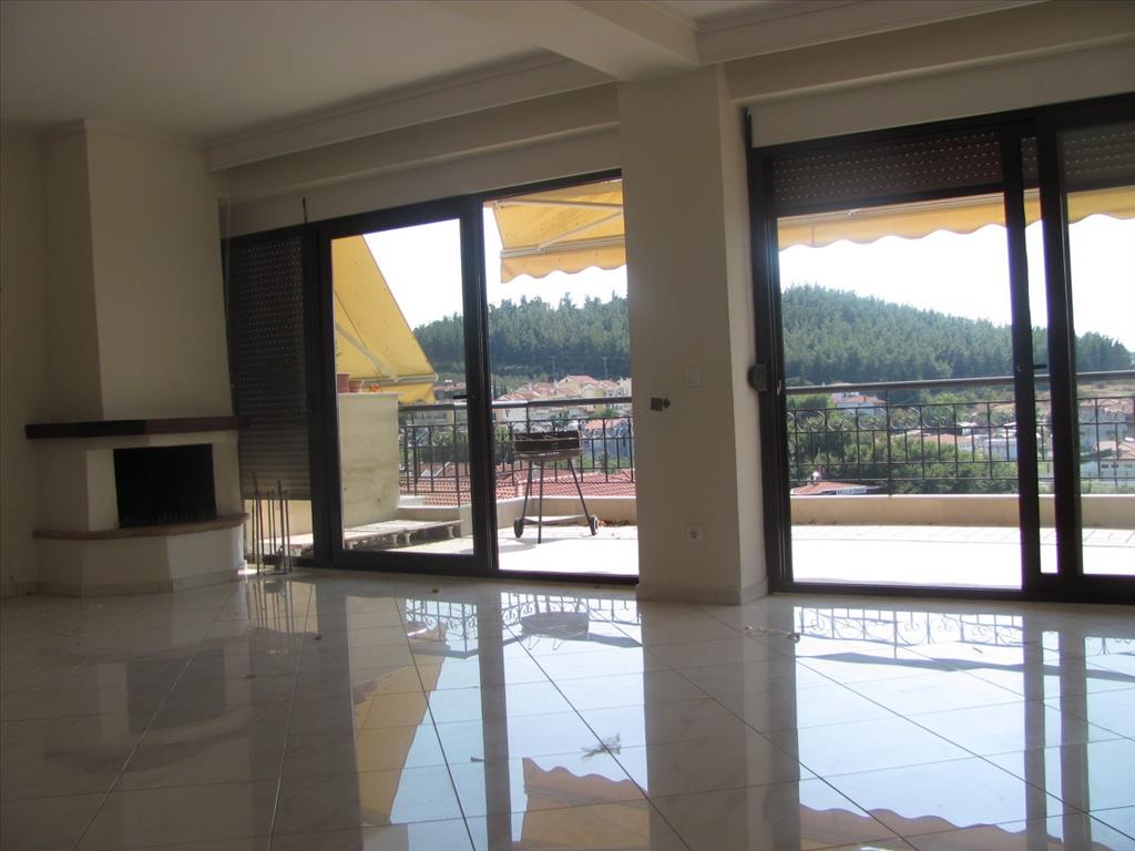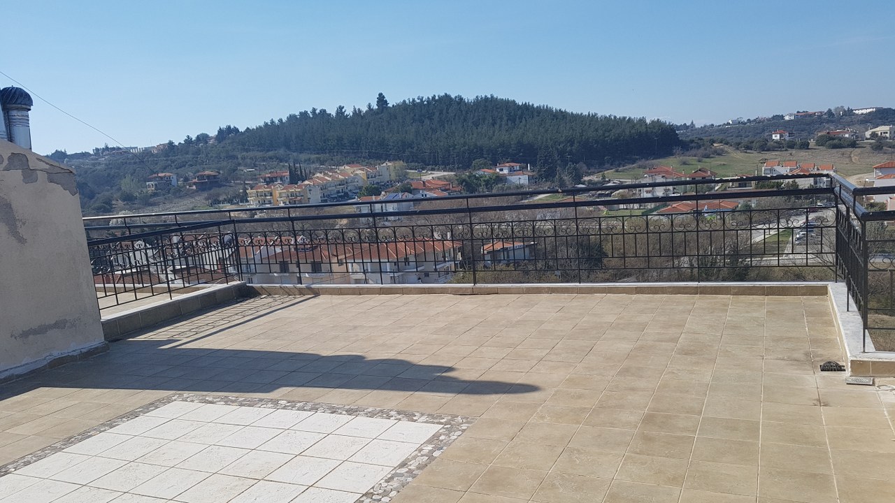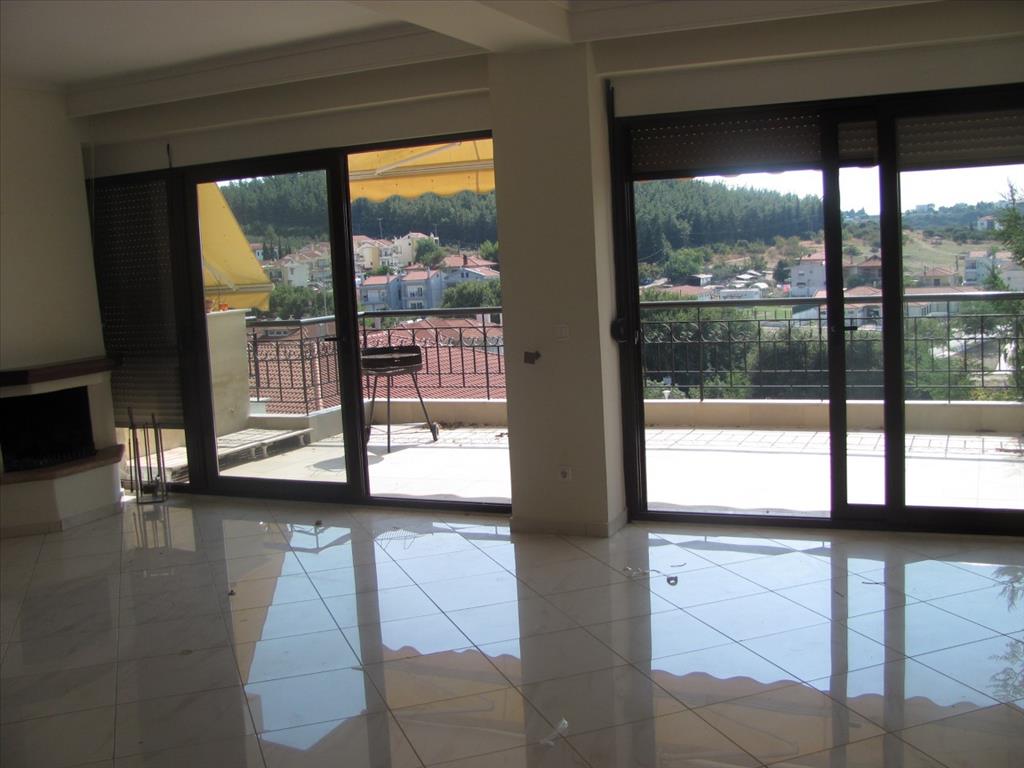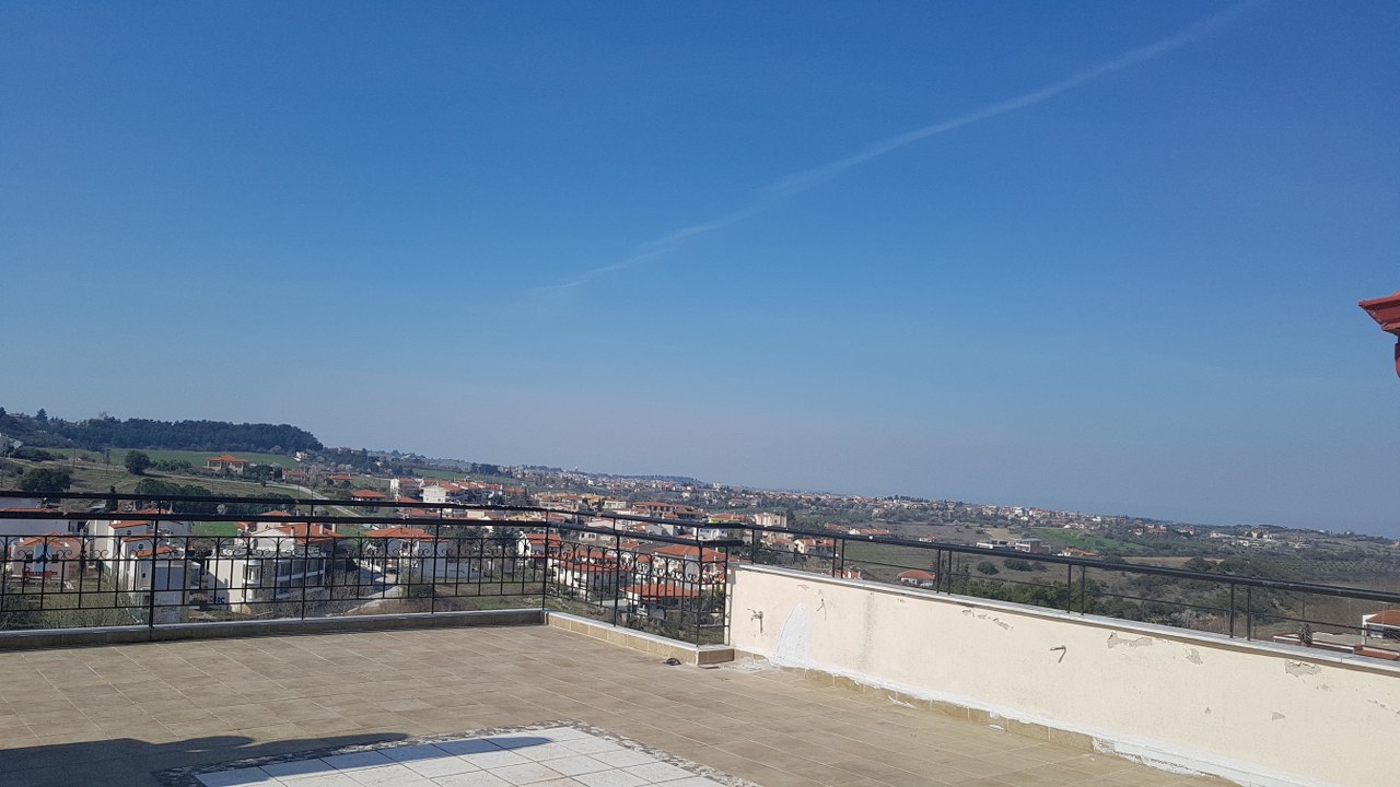 Продается квартира площадью 120 кв.м в пригороде города Салоники. Квартира расположена на третьем этаже и состоит из 3 спальных комнат, гостиной с кухней, одной ванной комнаты, одной душевой комнаты. Из окон открывается великолепный вид на море. У объекта есть камин, отопление. В гостиной квартиры есть выход на террасу площадью 50 кв.м с эксклюзивным панорамным видом.