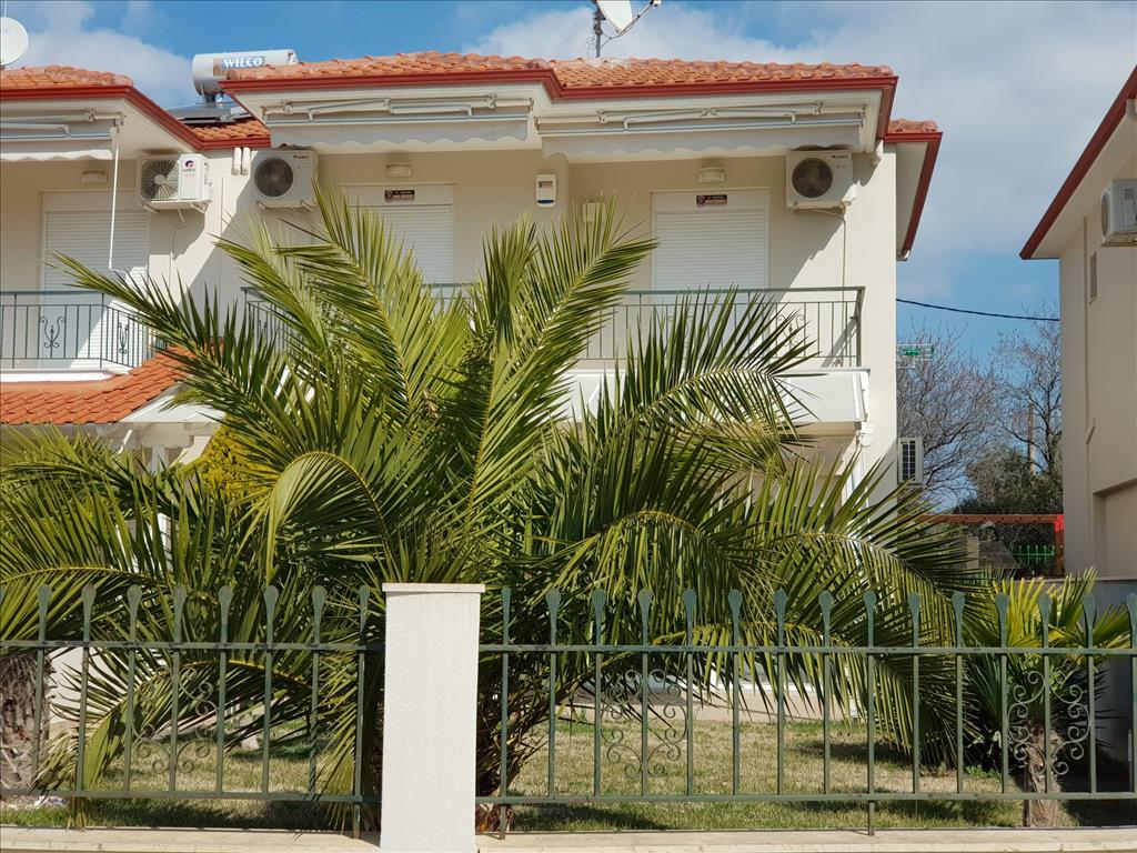 Продается таунхаус площадью 86 кв.м на полуострове Ситония, региона Халкидики. Таyнхаус расположен на 2 уровнях. Первый этаж состоит из гостиной с кухней, одной душевой комнаты. Второй этаж состоит из 2 спальных комнат, одной душевой комнаты, одной кладовой. Таунхаус имеет угловое расположение. Из окон открывается вид на город. У объекта есть солнечные батареи для нагрева воды, кондиционер, тенты, зона барбекю. Недвижимость продается с мебелью. К недвижимости относится сад.
