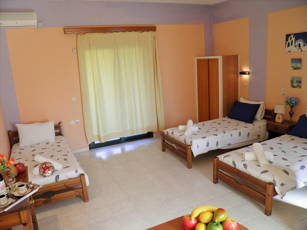 Отель расположен в районе Агиос Георгиос Аргирадон на юго-западе острова и имеет в общей сложности 24 номера: * из которых 12 номеров по 35 кв.м * 11 номеров по 25 кв.м * и один большой номер площадью 100 кв.м. На первом этаже здания расположены 6 четырехместных номеров площадью 35 м² с гостиной, спальней и ванной комнатой и 5 номеровплощадью 25м² с гостиной, спальней и ванной комнатой. На втором этаже расположены 6 четырехместных номеров площадью 35м² с гостиной, спальней и ванной комнатой и 5 номеровплощадью 25м² с гостиной, спальней и ванной комнатой. На третьем этаже здания находятся две квартиры - одна площадью 25м² и вторая площадью 100 м². В отеле также есть ресторан площадью 300 м², снэк-бар и открытый бассейн. Последняй ремонт состоялся в конце 2018 года.