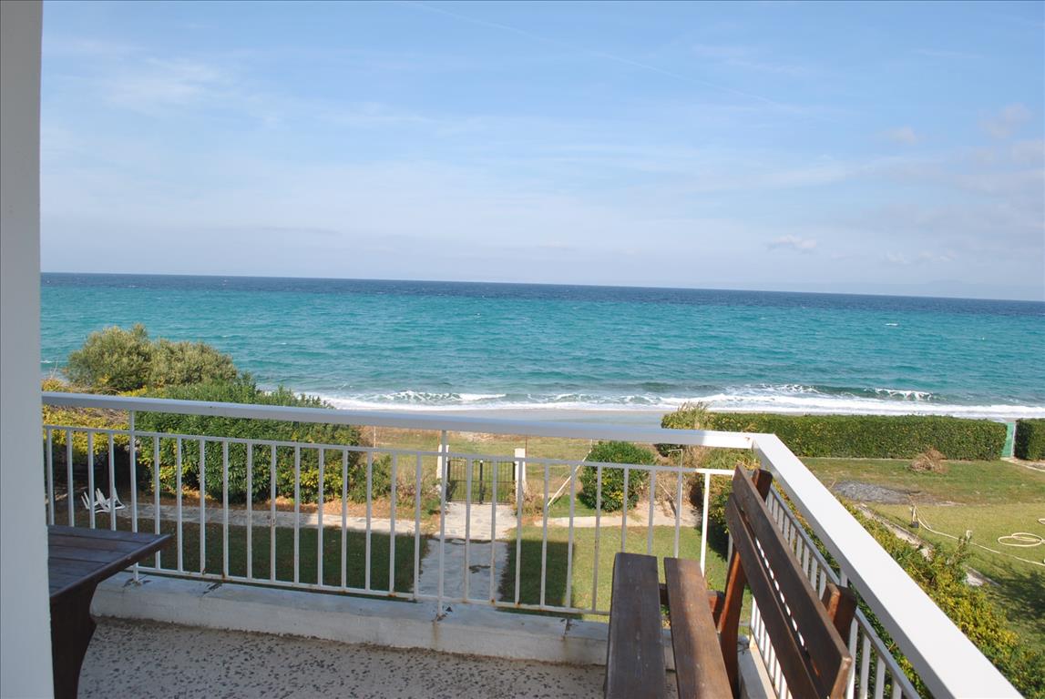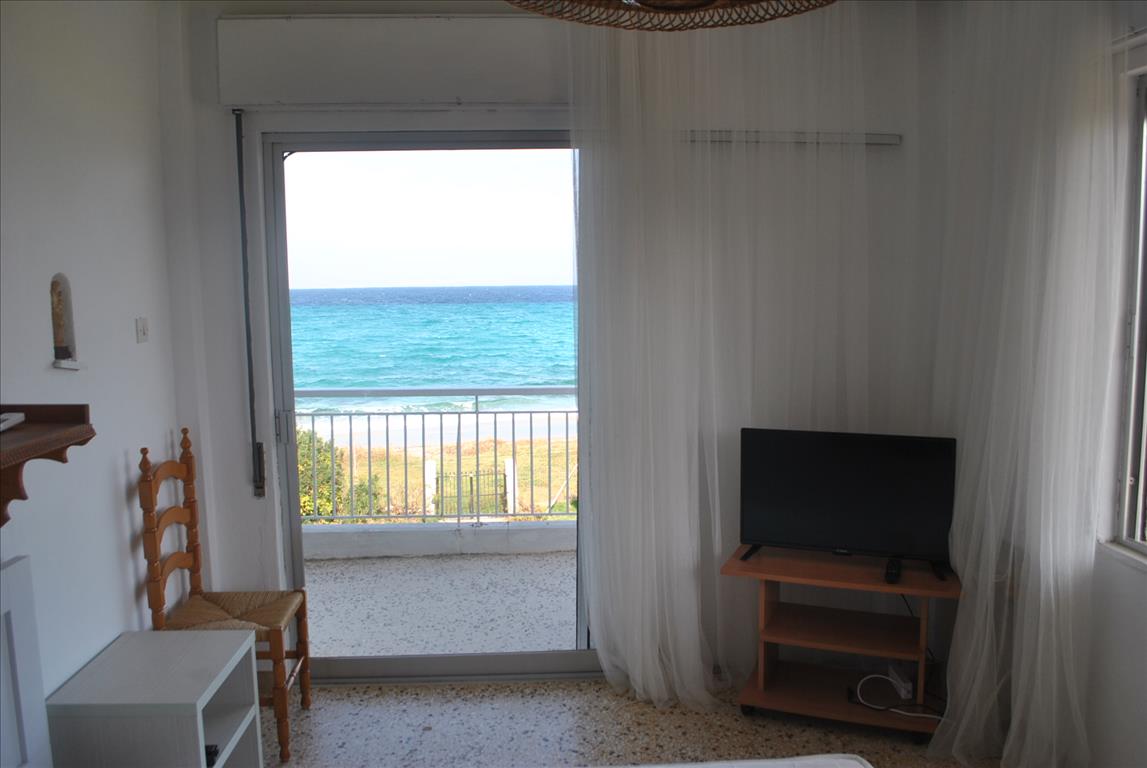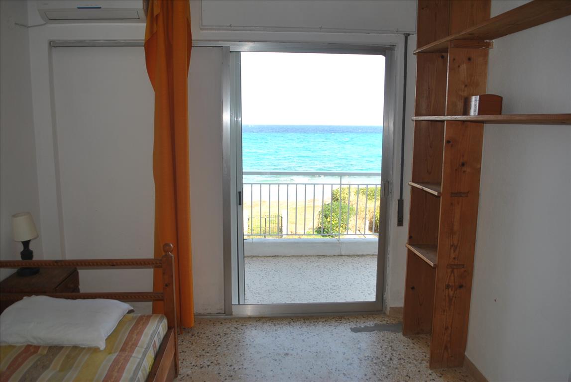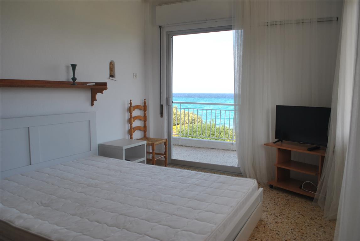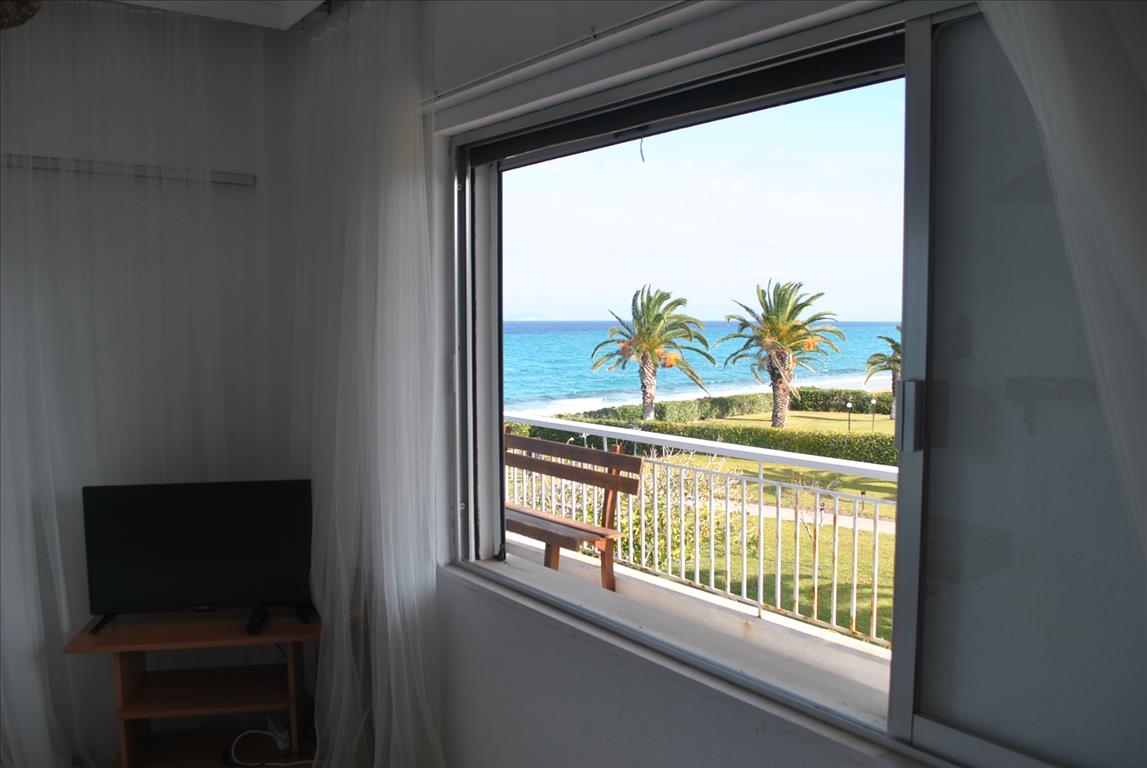 Продается квартира площадью 65 кв.м на полуострове Кассандра, региона Халкидики. Квартира расположена на третьем этаже и состоит из 2 спальных комнат, гостиной, одной кухни, одной ванной комнаты. Квартира имеет угловое расположение. Из окон открывается вид на море. У объекта есть кондиционер. Недвижимость продается с мебелью. К недвижимости относится парковочное место, сад.