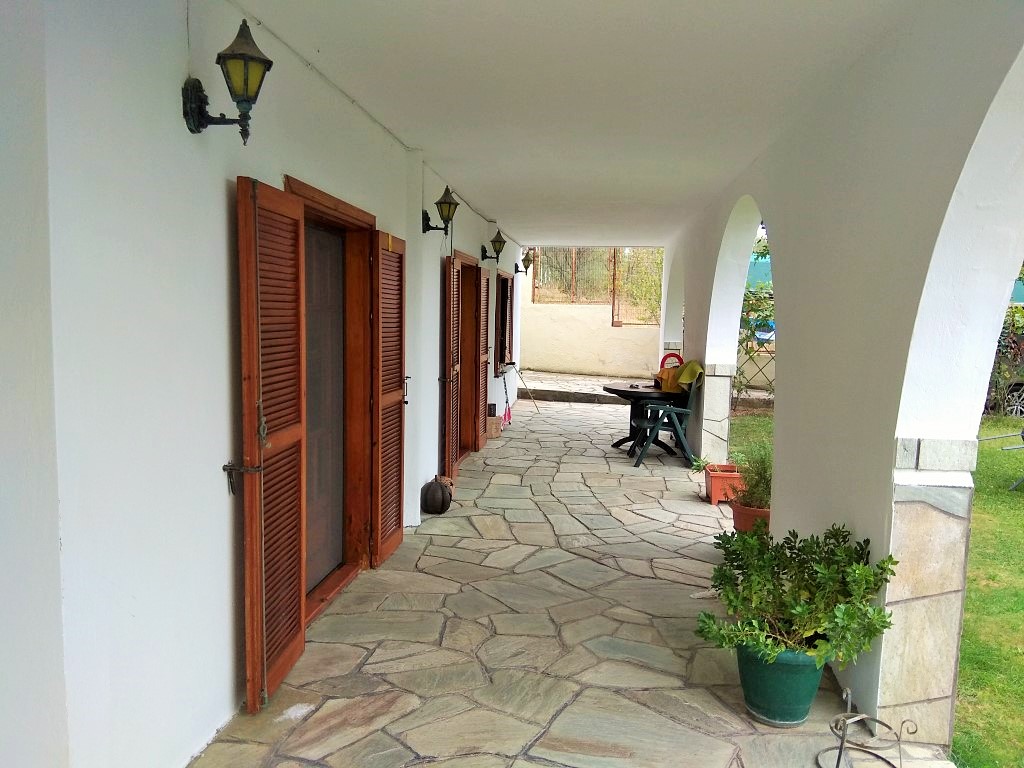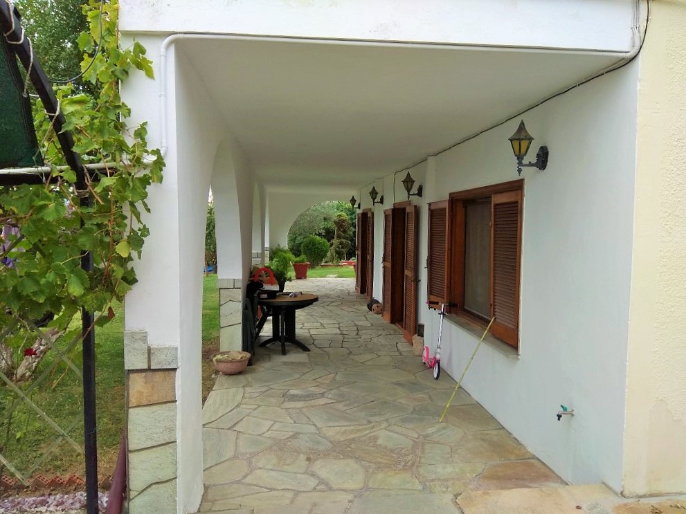 Продается 3-этажный коттедж площадью 400 кв.м в пригороде города Салоники. Первый этаж состоит из 2 спальных комнат, гостиной с кухней, одной душевой комнаты. Второй этаж состоит из гостиной с кухней, одной душевой комнаты, одной кладовой. Третий этаж состоит из 3 спальных комнат, гостиной, одной ванной комнаты, одной кладовой. У объекта есть солнечные батареи для нагрева воды, камин, кондиционер, зона барбекю, отопление. Недвижимость продается с мебелью. У объекта установлена сигнализация. К недвижимости относится парковочное место, сад, гараж.