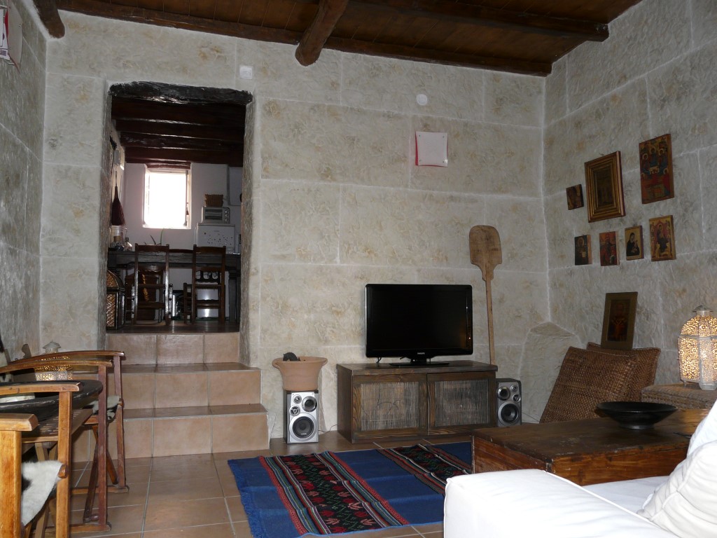Продается 2-этажный коттедж площадью 120 кв.м на острове Корфу. Первый этаж состоит из гостиной, одной кухни. Второй этаж состоит из 2 спальных комнат, одной душевой комнаты. У объекта есть кондиционер. Недвижимость продается с мебелью. К недвижимости относится сад. Продается традиционный каменный дом 120 кв.м. постройки XIX века. Вход в дом по лестнице на второй этаж, где располагаются две спальные комнаты и душевая. Спустившись по винтовой лестнице, попадаешь в столовую с кухней и гостиную, из которой есть выход в сад. Рядом с главным входом в дом располагается студия с душевой, которую также можно использовать как кладовую комнату.