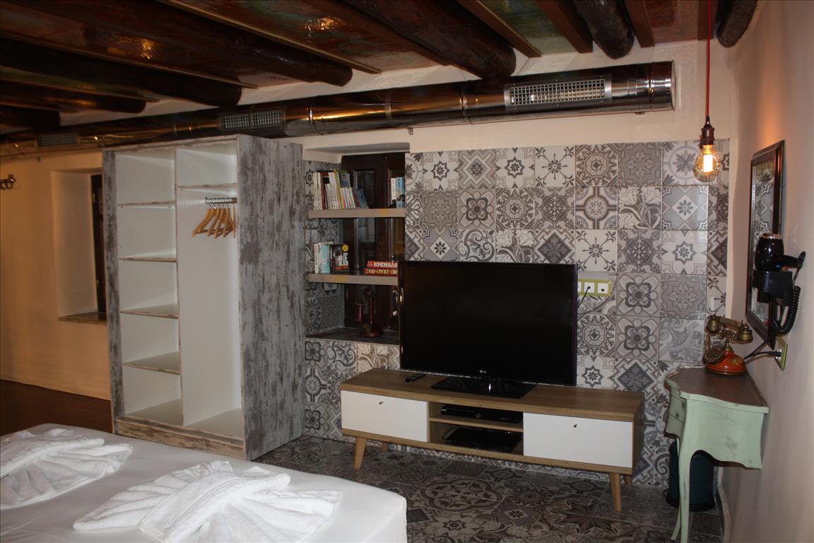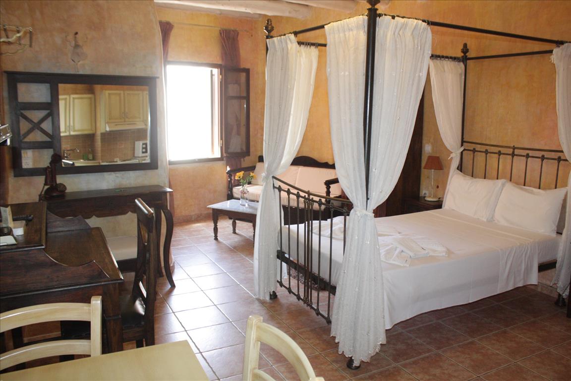 Продается гостиница в венецианском центре, в г. Ханья. Здание отеля находится в тихом переулке старого города и представляет из себя 4-этажное строение с двумя входами. Первая входная группа находится на уровне улицы и представляет аркообразный проем с деревянными двухстворчатыми дверьми. Этот вход ведет в двухуровневое жилое помещение (суммарно 90 кв.м) два уровня. На первом уровне мезонетты располагается мини-кухня с современной техникой, обеденная и диванная группа, совмещенный оформленный санузел с просторным душем . Второй уровень мезонетты представляет из себя просторную спальню с телевизором.Вторая входная группа расположена на втором уровне здания, к нему ведет внешняя лестница с коваными перилами. В этой части здания три сюиты) расположены друг над другом. Площадь каждого номера составляет по 45 кв.м. В каждом номере есть камин, просторная кровать с пологом, санузел с ванной, мини кухня с мини обеденной группой. гостиница имеет статус:"отель в традиционном греческом стиле", что потверждено сертификатом Министерства Культуры и Туризма Греции.Ираклион 07/12/2009, ном. прт.5624