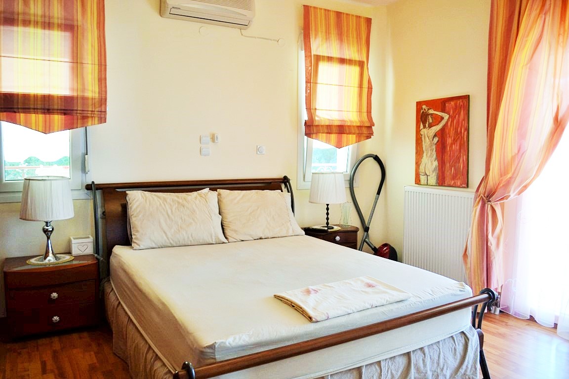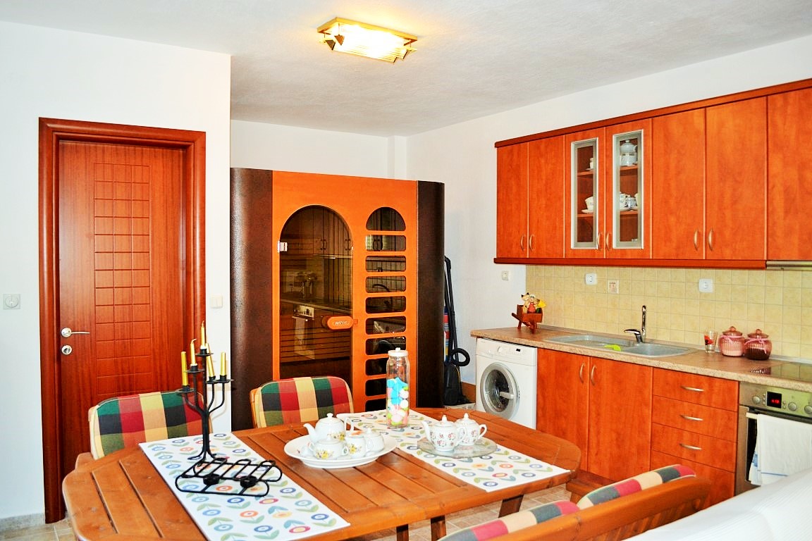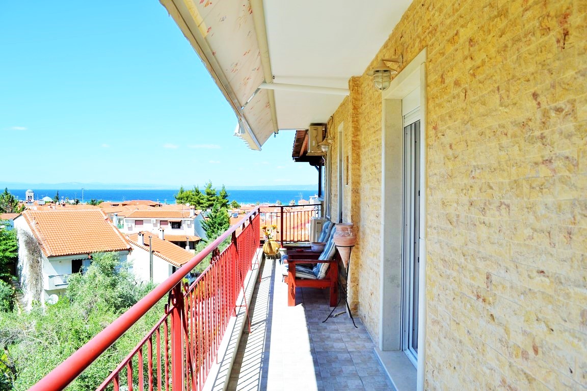Продается таунхаус площадью 160 кв.м на полуострове Кассандра, региона Халкидики. Таyнхаус расположен на 3 уровнях. Первый этаж состоит из гостиной с кухней, одной душевой комнаты. Второй этаж состоит из гостиной с кухней, одного санузла. Третий этаж состоит из 3 спальных комнат, одной ванной комнаты. Из окон открывается великолепный вид на море, на горы, на город, на лес. У объекта есть солнечные батареи для нагрева воды, камин, кондиционер, тенты, зона барбекю, отопление. Недвижимость продается с мебелью. К недвижимости относится парковочное место, сад.