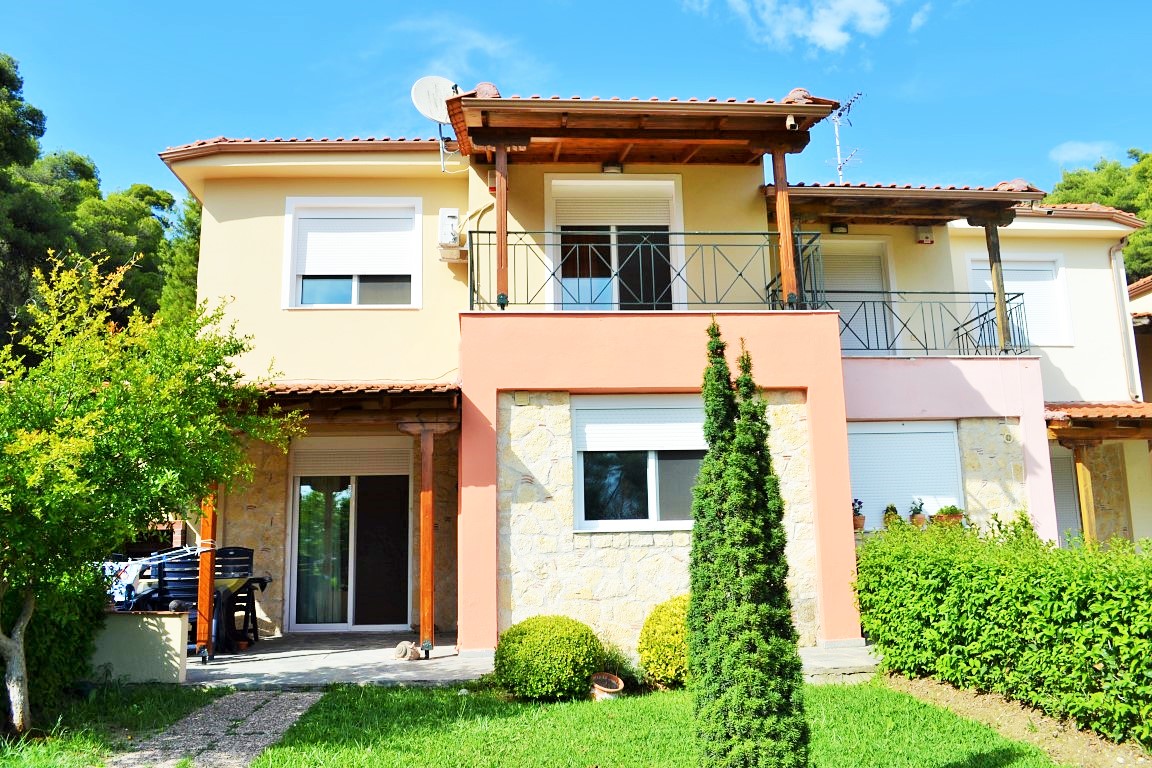 Продается таунхаус площадью 185 кв.м на полуострове Кассандра, региона Халкидики. Таyнхаус расположен на 3 уровнях. Полуподвал состоит из одной спальной комнаты, 2 кладовых. Первый этаж состоит из гостиной с кухней, одной душевой комнаты. Второй этаж состоит из 3 спальных комнат, одной ванной комнаты. Из окон открывается великолепный вид на море, на горы, на лес. У объекта есть камин, кондиционер, тенты, зона барбекю. Недвижимость продается с мебелью. У объекта установлена сигнализация. К недвижимости относится парковочное место, сад.