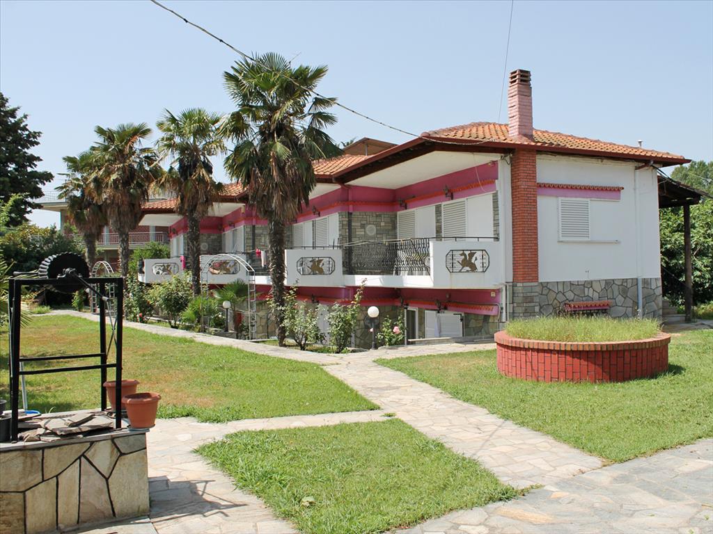 Продается двухэтажная гостиница в регионе Олимпийской Ривьеры. Гостиница владеет площадью 270 кв.м. и состоит из 4 двухкомнатных квартир на втором этаже и 2 трехкомнатных квартир на цокольном этаже. Площадь участка занимает 1250 кв.м. Участок покрыт зеленым газоном, имеется сад из финиковых и фруктовых деревьев, артезианская скважина, а также на территории учаска расположены складские помещения и парковочные места. Организованный песчаный пляж расположен на расстоянии 100 метров.