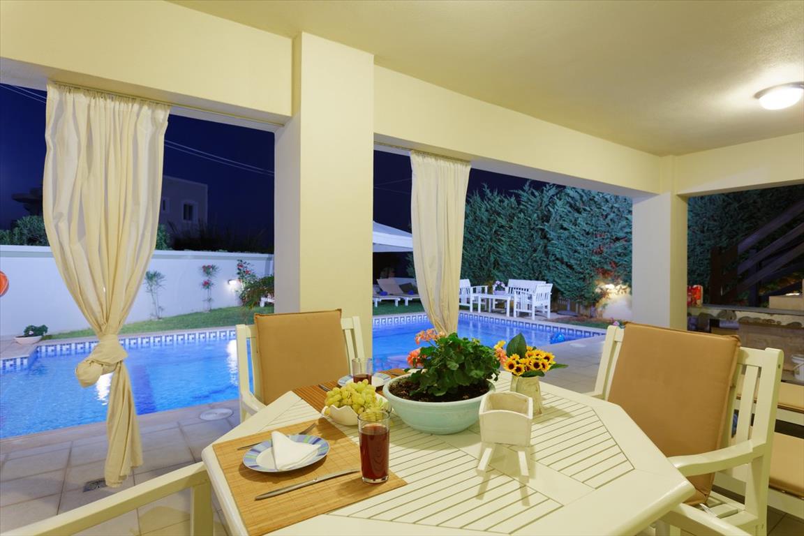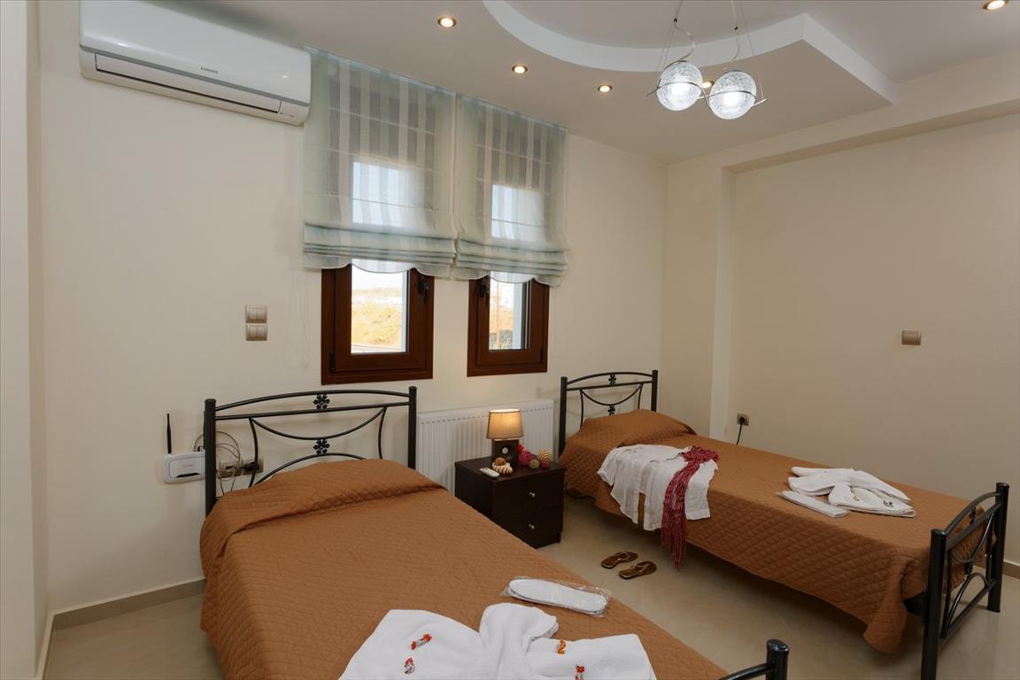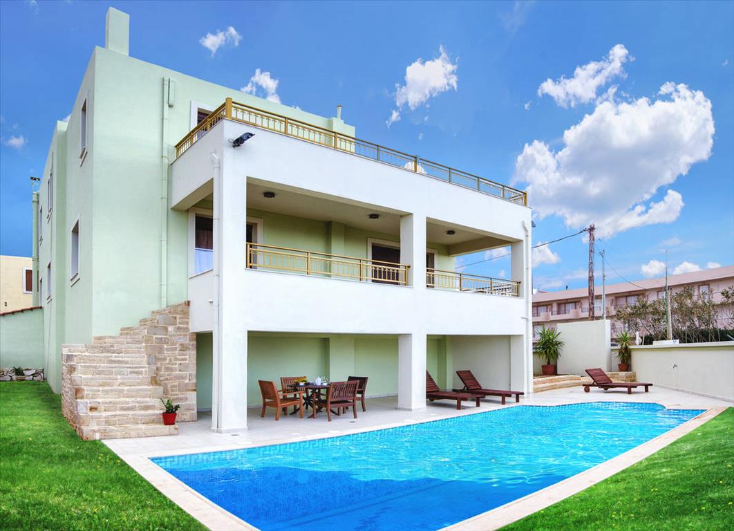 Продается 2-этажная вилла площадью 300 кв.м на острове Крит. Первый этаж состоит из одной спальной комнаты, гостиной с кухней, одного санузла. Второй этаж состоит из 4 спальных комнат, одной ванной комнаты, одной душевой комнаты. Из окон открывается великолепный вид на море. У объекта есть солнечные батареи для нагрева воды, камин, кондиционер, зона барбекю, отопление. Недвижимость продается с мебелью. К недвижимости относится сад, гараж. На территории расположен бассейн личного пользования.