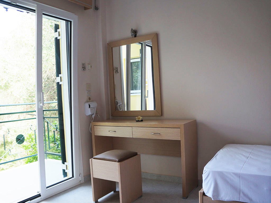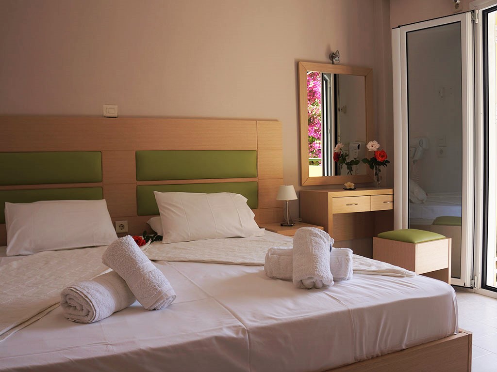 Отель расположен на южной стороне острова Корфу, в центре курортного поселка, в 40 км от аэропорта и центра г. Керкира. Поселок - исключительно молодежный курорт, известный своей активной ночной жизнью.Отель реставрирован в 2015 г. (электронные замки, душевые кабины, звукоизоляция, новые ТВ с плоским экраном LED – 32 дюйма, новые кондиционеры Inverter, новые анатомические матрасы, камеры видеонаблюдения территории, сауна).Всего 14 номеров.На цокольном этаже находится ресепшн, сауна на 4 чел., 2 туалетные комнаты и душ.На первом этаже: 5 квартир (3 студии (по 30 кв.м.) и 2 квартиры (2-х комнатные (по 55кв. м)).На втором этаже: 5 квартир (3 студии (по 30 кв.м.) и 2 квартиры (2-х комнатные (по 55кв. м)).В номерах: полностью оборудованный кухонный уголок (эл. плита с 3-мя конфорками, духовка, электрочайник, тостер, микроволновка, посуда).На третьем этаже сюита из 3-х комнат, ванной комнаты, душевой комнаты и гостиной с кухней, также 2 телевизора, 2 кондиционера, 2 сейфа.В каждой квартире есть веранды, из которых открываются панорамные виды на море и пляж.Рядом с поселком расположен порт, где ежедневно курсируют паромы в порт Игуменица.