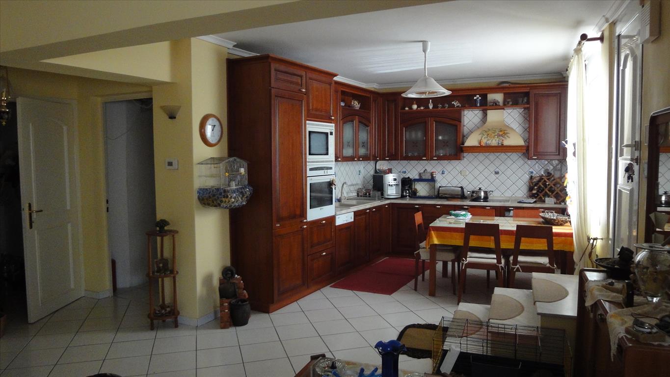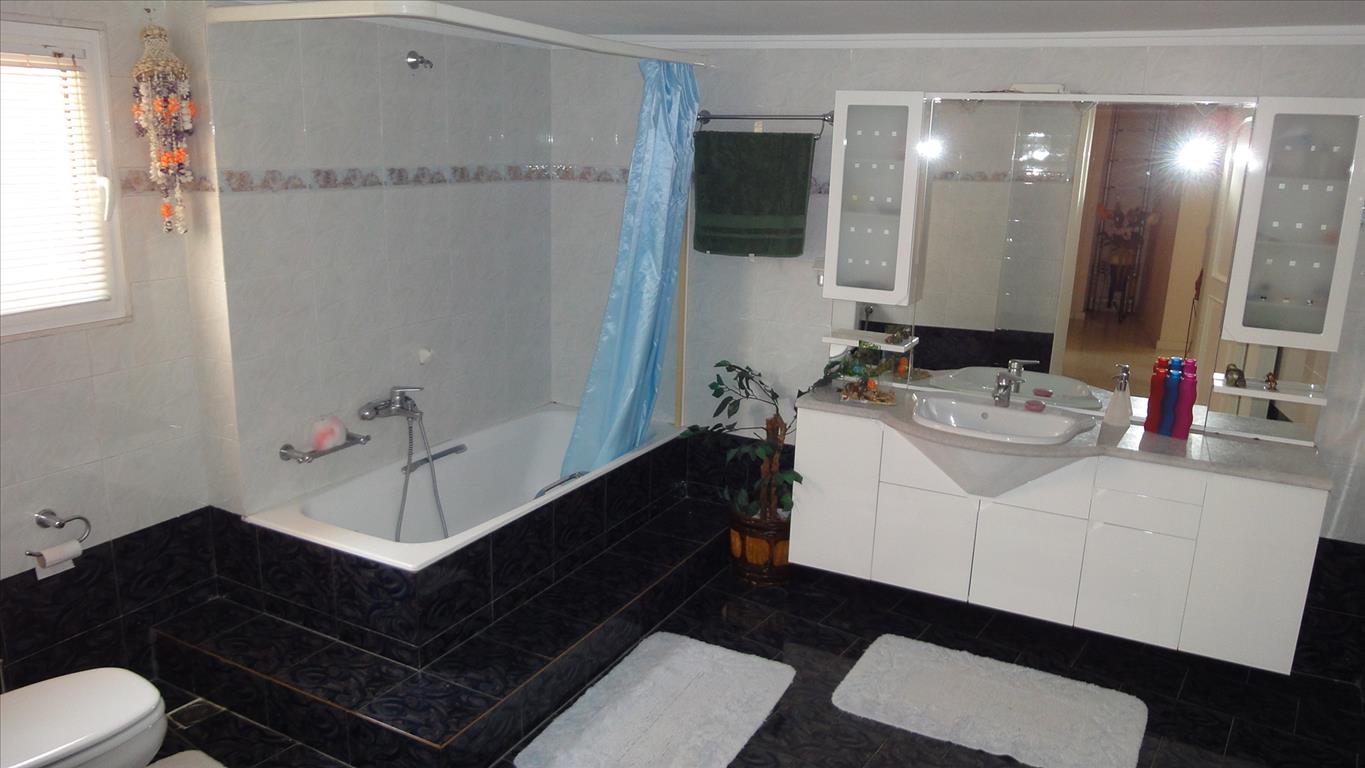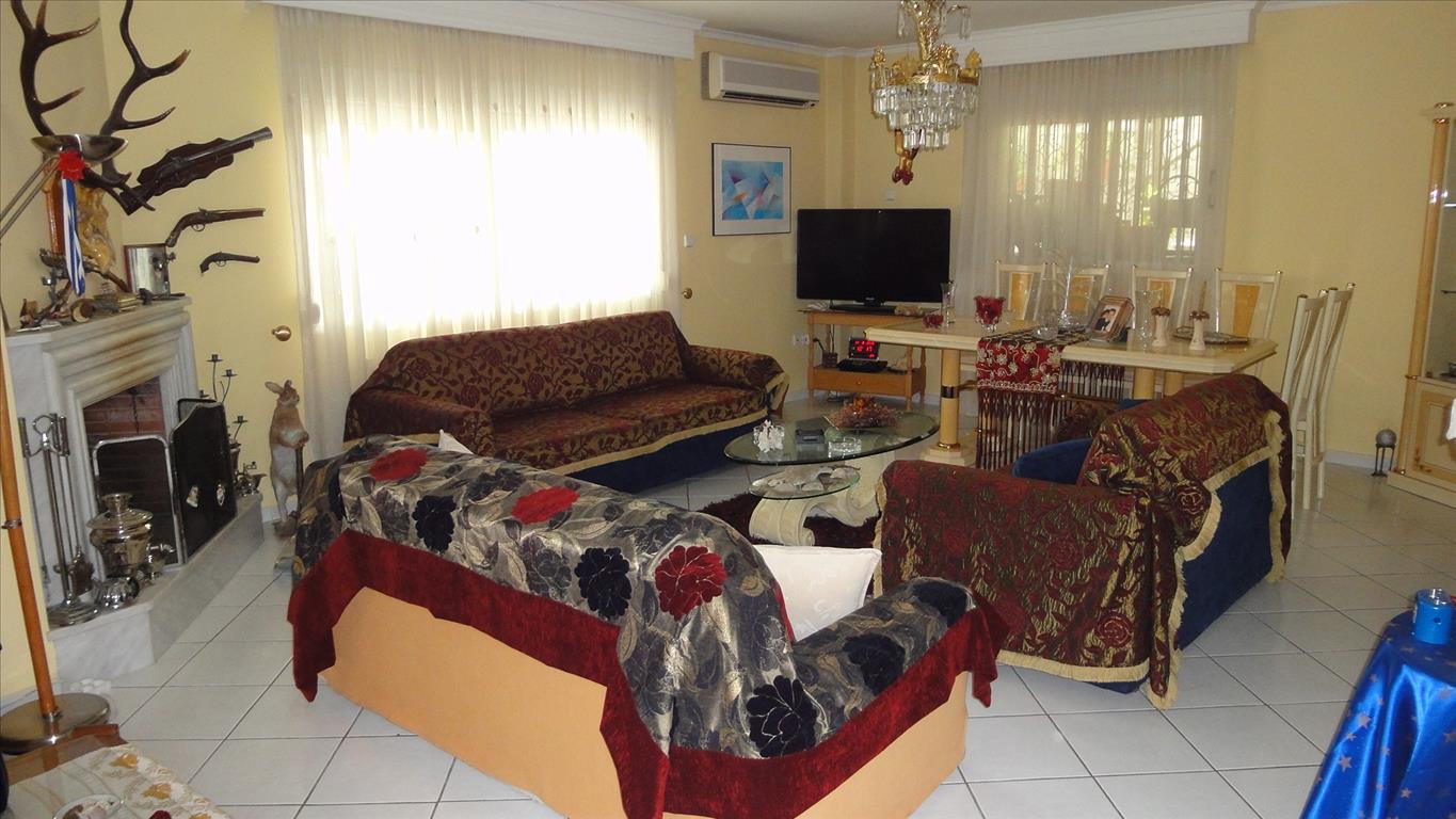 Продается таунхаус площадью 300 кв.м в Салониках. Таyнхаус расположен на 3 уровнях. Полуподвал состоит из одной спальной комнаты, гостиной с кухней, одной ванной комнаты, одной кладовой. Первый этаж состоит из гостиной, одной кухни, одного санузла, одной кладовой. Второй этаж состоит из 3 спальных комнат, одной ванной комнаты, одной кладовой. Из окон открывается вид на горы. У объекта есть солнечные батареи для нагрева воды, камин, кондиционер, тенты, зона барбекю, отопление. Недвижимость продается с мебелью. У объекта установлена сигнализация. К недвижимости относится парковочное место, сад.