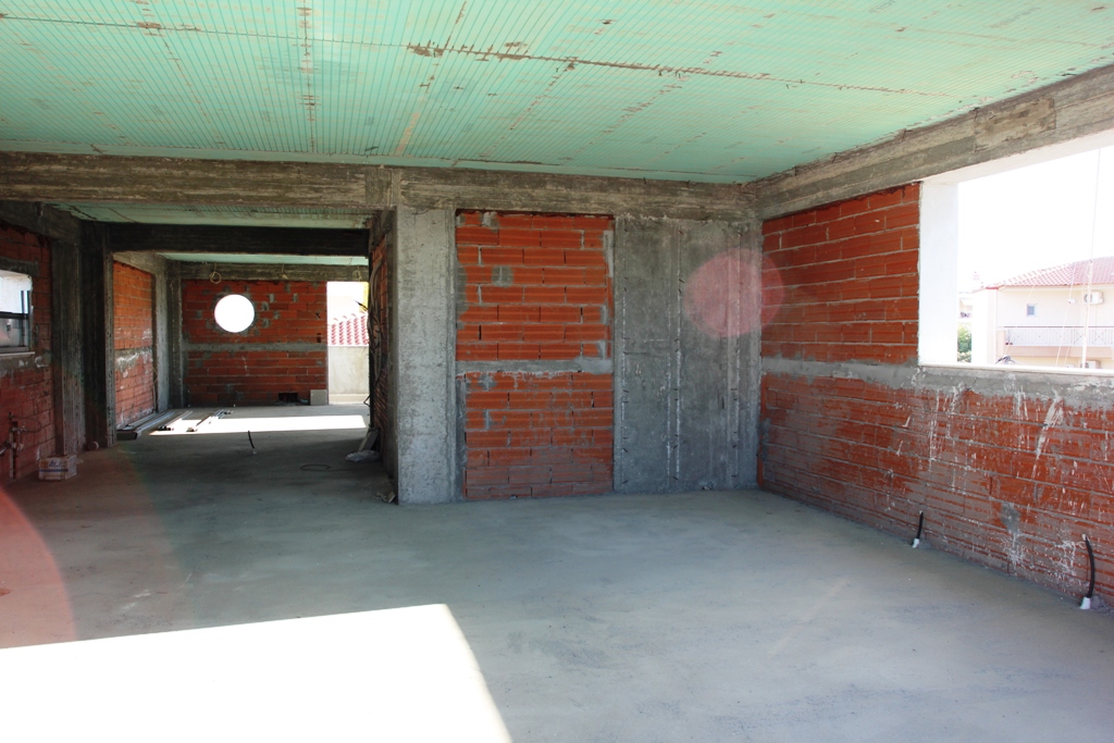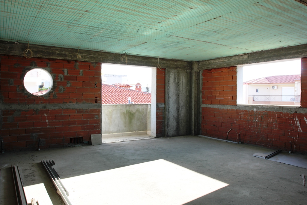 Продается здание площадью 250 кв.м. в пригороде Салоники. Здание состоит из пяти уровней. Цокольный этаж состоит из одного общего помещения. Первый этаж распланирован под коммерческую деятельность, второй уровень не перекрыт, но это возможно, для получения второго уровня для магазина. Третий уровень состоит из гостиной с кухней, двух спальных и санузла с ванной. Четвертый этаж не распланирован. Над четвертым этажем находится руф гарден с высокими бортиками. В здании есть шахта для лифта, от цокольного до четвертого уровня.