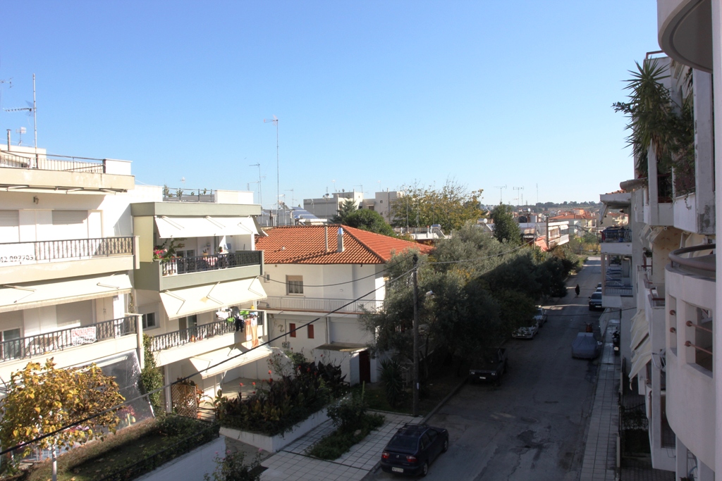 Продается квартира площадью 77 кв.м в пригороде города Салоники. Квартира расположена на четвертом этаже и состоит из 2 спальных комнат, гостиной с кухней, одной ванной комнаты. Квартира имеет угловое расположение. Из окон открывается вид на город. У объекта есть отопление. В здании расположен лифт. К недвижимости относится парковочное место. Также в этом здании есть три квартиры аналогичной планировки, площадью 94 кв.м. каждая, расположенные на втором, третьем и четвертом этажах. Стоимость данных квартир - 110000 евро каждая.