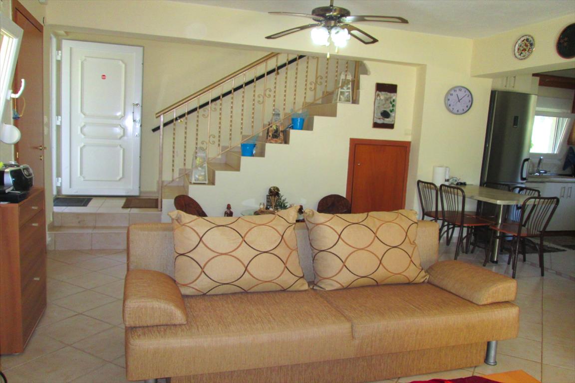 Продается таунхаус площадью 130 кв.м на полуострове Ситония, региона Халкидики. Таyнхаус расположен на 3 уровнях. Первый этаж состоит из одной спальной комнаты, гостиной с кухней, одного санузла, одной кладовой. Второй этаж состоит из 2 спальных комнат, одной душевой комнаты, одной кладовой. Третий этаж состоит из одной спальной комнаты. Из окон открывается великолепный вид на море, на горы, на лес. У объекта есть солнечные батареи для нагрева воды, кондиционер. К недвижимости относится парковочное место, сад.