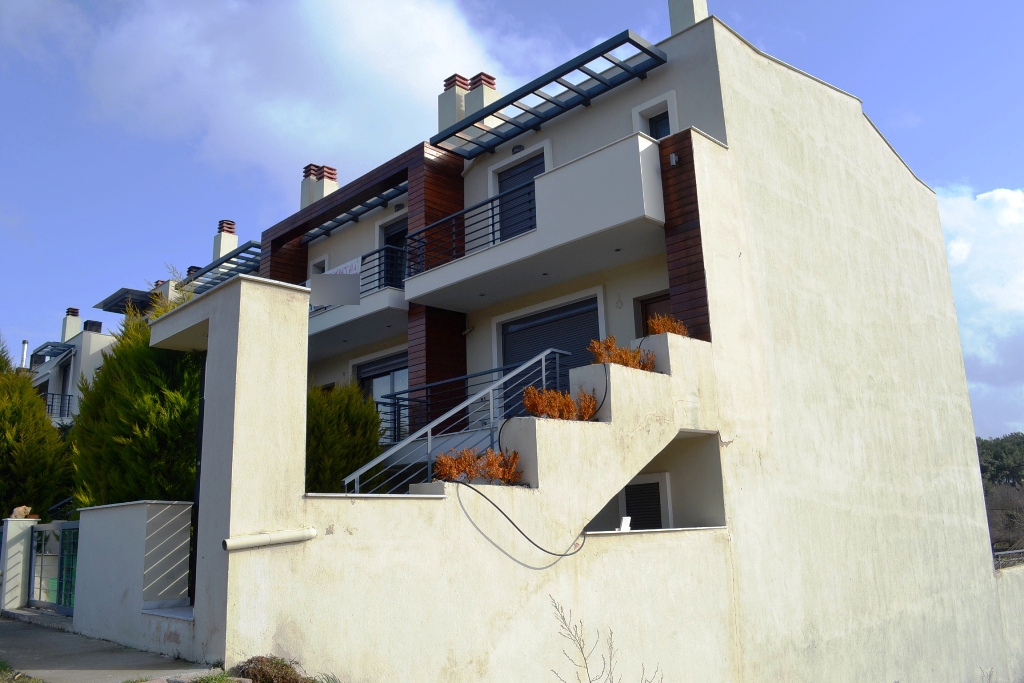 Продается таунхаус площадью 173 кв.м в пригороде города Салоники. Таyнхаус расположен на 3 уровнях. Первый этаж состоит из гостиной с кухней, одной душевой комнаты. Второй этаж состоит из гостиной с кухней, одного санузла. Третий этаж состоит из 3 спальных комнат, одной ванной комнаты. Из окон открывается великолепный вид на горы. У объекта есть камин, отопление. У объекта установлена сигнализация. К недвижимости относится сад. В наличии есть два таунхауса.