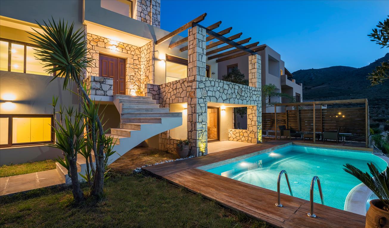 Продается 4-этажная вилла площадью 330 кв.м на острове Крит. Полуподвал состоит из одной кладовой. Первый этаж состоит из одной спальной комнаты, гостиной, одной кухни, одной ванной комнаты. Второй этаж состоит из 2 спальных комнат, гостиной с кухней, одной душевой комнаты, одной кладовой. Третий этаж состоит из одной спальной комнаты, гостиной, одной ванной комнаты, одной душевой комнаты. Из окон открывается великолепный вид на море, на горы. У объекта есть солнечные батареи для нагрева воды, камин, кондиционер, зона барбекю, отопление. У объекта установлена сигнализация. К недвижимости относится парковочное место, сад. На территории расположен бассейн личного пользования.