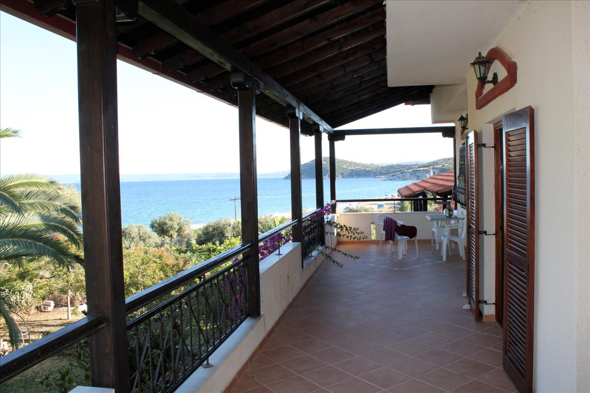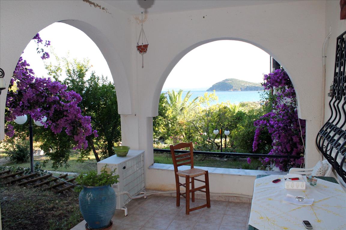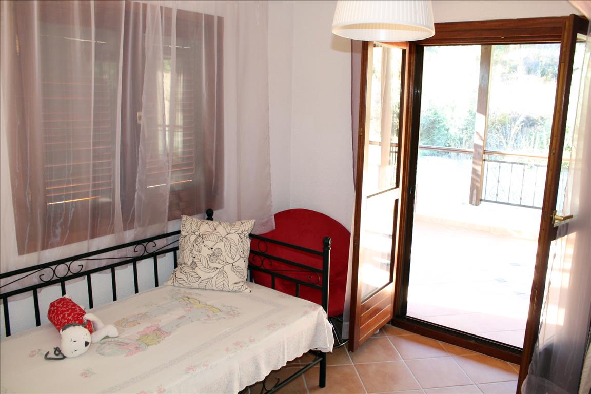 Продается таунхаус площадью 120 кв.м на полуострове Афон, региона Халкидики. Таyнхаус расположен на 2 уровнях. Первый этаж состоит из 2 спальных комнат, гостиной с кухней, одной ванной комнаты. Второй этаж состоит из 2 спальных комнат, гостиной, одной душевой комнаты. Таунхаус имеет угловое расположение. Из окон открывается вид на море, на горы, на лес. У объекта есть кондиционер, тенты, зона барбекю. Недвижимость продается с мебелью. К недвижимости относится парковочное место, сад.